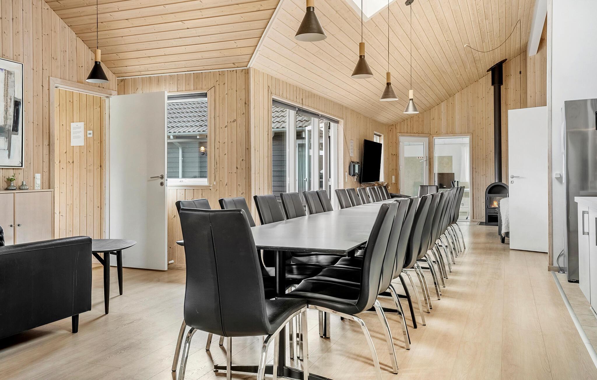 I dette rummelige feriehus i Marielyst på Falster tilbringer I ferien med alt, hvad I behøver til afslappende dage med en større gruppe. Uanset om I er flere familier eller venner, finder I her masser af plads til at lave mad, lege og slappe af sammen. Begynd dagene i det moderne, åbne køkken, hvor I kan tilberede morgenmad sammen. Tag plads ved det lange spisebord og planlæg jeres dag i hyggeligt selskab. De mange siddepladser lægger op til at udveksle ideer og blive hængende. De, der ønsker at dyrke sport, kan benytte aktivitetsrummet med billard, bordtennis og airhockey. Til afslapning har I jeres egen pool, spabad og sauna.
