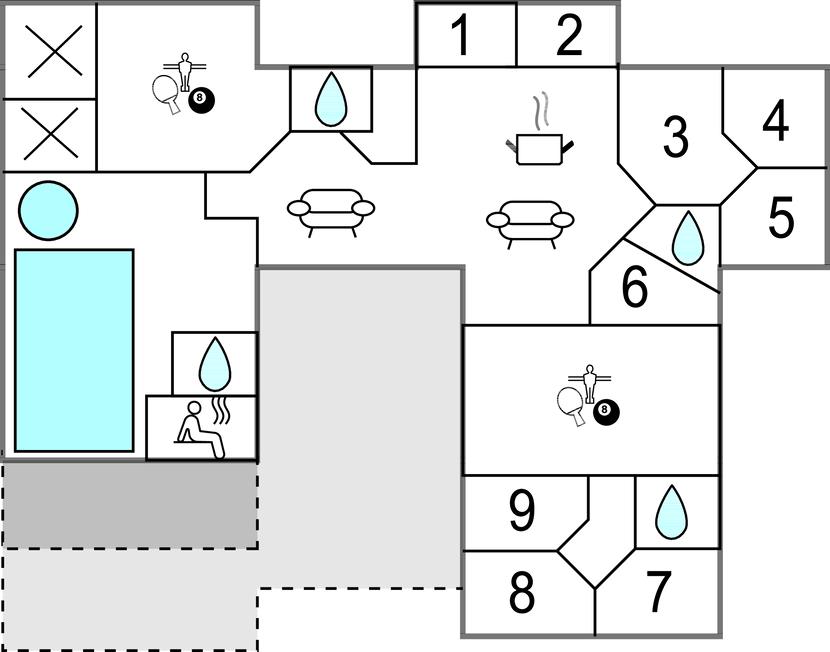 Skal I fejre den helt store mærkedag, eller er I på udkig efter en bolig med plads til hele familien på tværs af generationerne, er dette dejlige hus i Marielyst det oplagte valg for jer. Her får I, ude som inde, masser af plads og en lang række faciliteter, der gør jeres ophold helt og aldeles bekymringsfrit, og som gør det til en decideret drømmedestination for alle aldre. Uanset vejret kan I boltre jer i den store pool-afdeling med en stor pool og spabad, hvor de voksne kan holde øje med børnene, der plasker rundt. Og måske I skal ind og svede igennem i saunaen? Der er flere aktivitetsrum i huset, hvor I kan udfordre hele flokken til et slag pool, bordtennis eller airhockey, inden kokkene begynder madlavningen i det veludstyrede køkken. Dæk op ved spisebordet med plads til alle og nyd et festligt måltid, inden I runder aftenen af med en familiequiz, brætspil eller filmaften i det behagelige sofaområde.