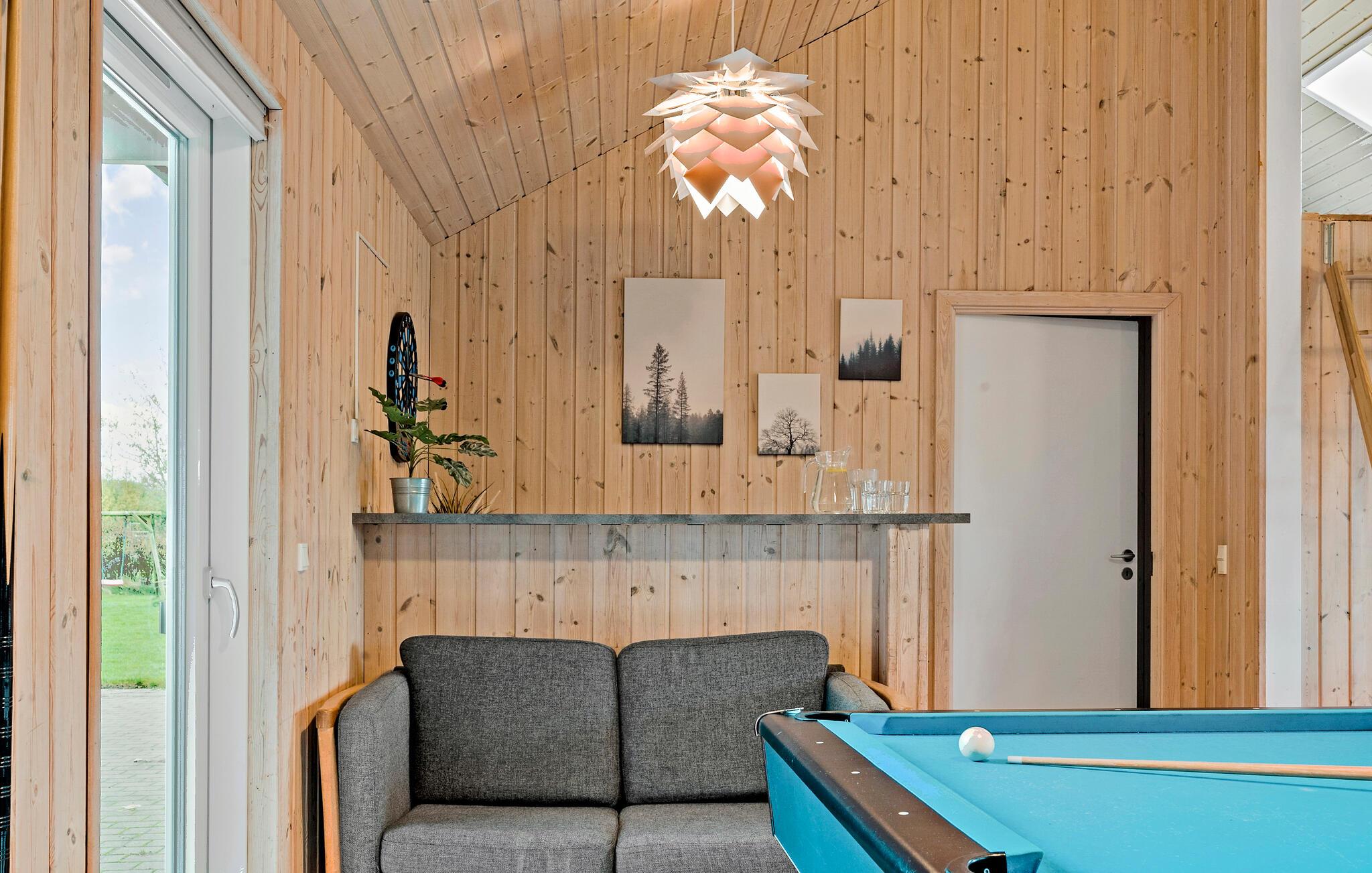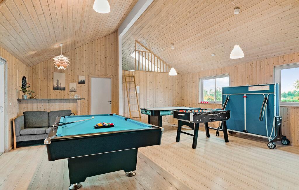 Har I planer om en tur med den udvidede familie, jeres gode venner eller måske har I noget, der skal fejres? Så er dette skønne, store hus i Marielyst helt perfekt. Huset er lyst og åbent med masser af plads, godt med soveværelser og aktiviteter til alle aldre. I aktivitetsrummet kan I udfordre hele flokken til et slag billard og bordfodbold. Husets hjerte er den store og åbne stue, hvor I kan hygge jer med hver jeres feriegøremål og gøre madlavningen til et fornøjeligt fælles projekt. På gråvejrsdagene er det også skønt at kunne fordrive tiden i poolrummet, hvor der også er spa, og hvis I kommer hjem med røde næser efter en lang travetur, kan I få varmen i saunaen.