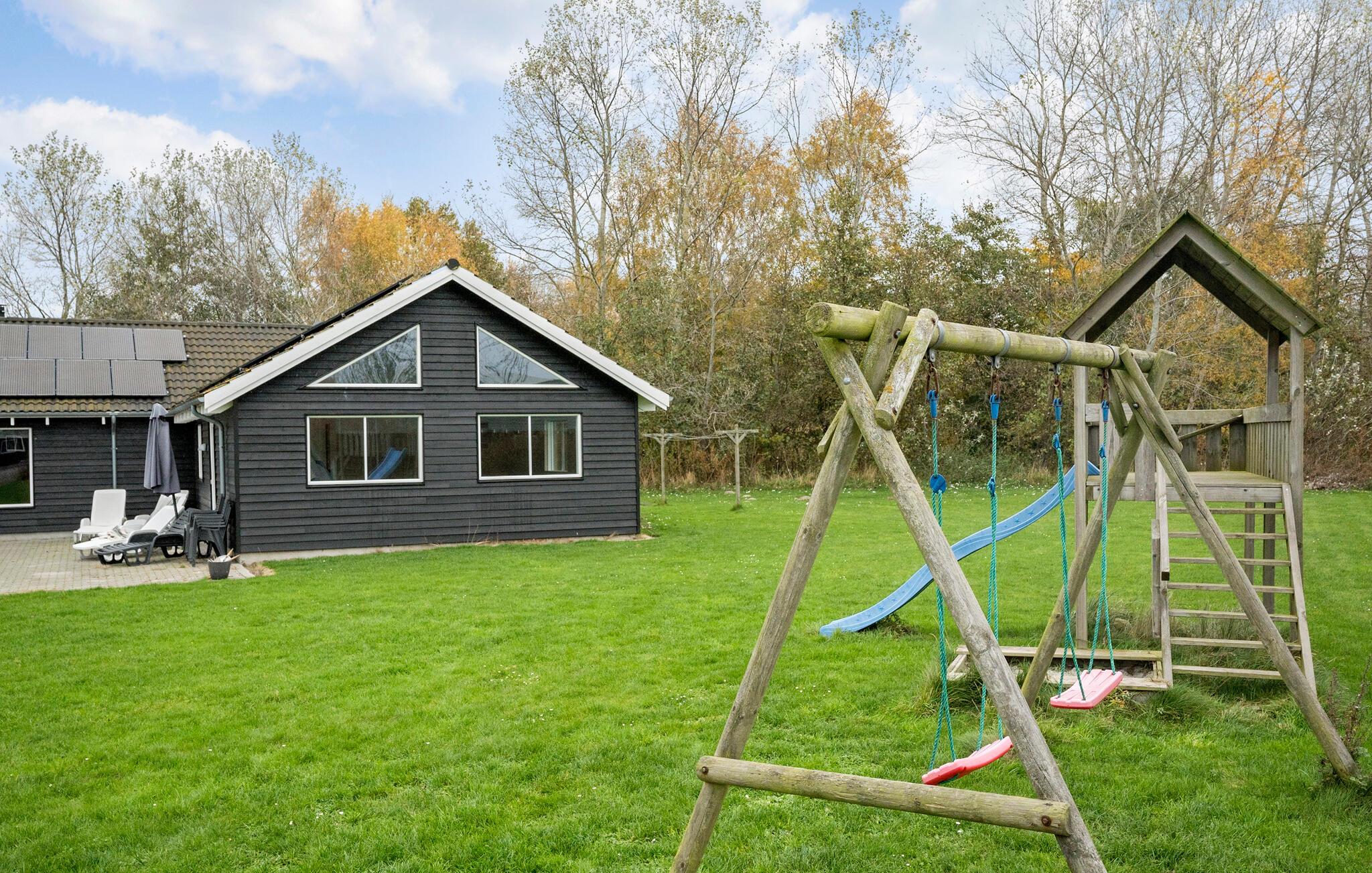 Til huset hører en dejlig, stor have, hvor børnene kan boltre sig med hele dagen og nyde godt af legetårnet. Måske I skal udfordre hele flokken til en fodboldkamp? En smuk feriedag rundes bedst af med familiens livretter, som I kan tilberede på murstensgrillen og nyde i den lune aftensol.