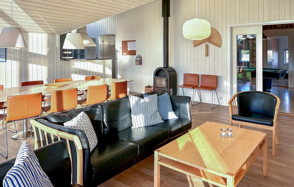 Velkommen til et flot og rummeligt feriehus, hvor I kan se frem til et stort udvalg af fælles aktiviteter i enhver sæson. I poolområdet er der vandrutsjebane, spabad og sauna, så her får I nemt timerne til at gå. Mellem dagens udflugter kan I hygge jer med et spil billard, bordtennis, bordfodbold eller dart i aktivitetsrummet. Der er også gode rammer det åbne køkken og opholdsstuen, som har udsigt til poolområdet. Efter dagens aktiviteter er det hyggeligt at nyde varmen fra brændeovnen i stuen.