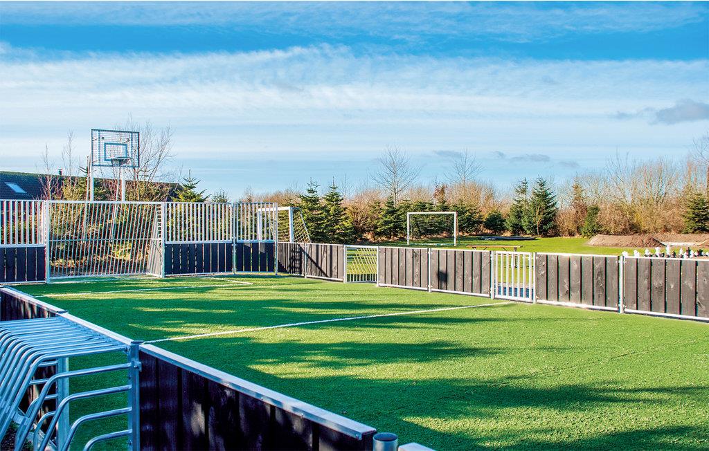 I vil helt sikkert bruge en masse af jeres tid udendørs, hvor i finder et væld af sjove aktiviteter. Multibanen med kunstgræs gør det muligt at udfolde jeres sportslige evner. De mange mål gør det muligt at spille på både små og store baner og vareiere mellem fodbold, basket eller noget helt tredje. I kan også se frem til at slappe af på solterrasserne med bord-bænke-sæt, inden I giver jer i kast med en volleykamp på den flotte beachvolleybane eller et spil kæmpeskak. Afslut en skøn dag med hygge omkring bålet, mens I bager snobrød eller rister skumfiduser.