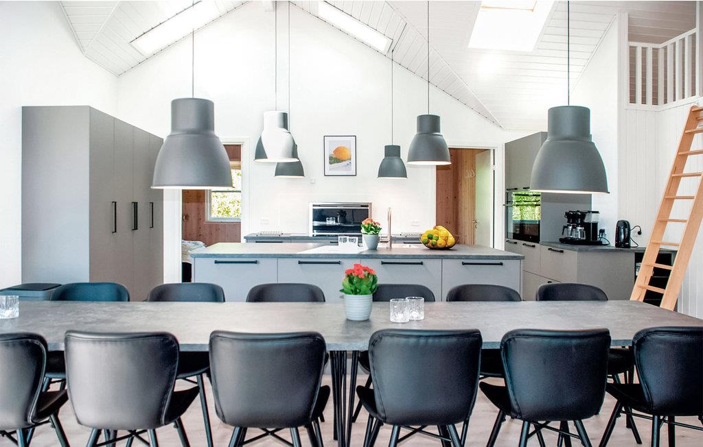 Dette rummelige sommerhus byder både plads og komfort til flere familier eller en større rejsegruppe. I de gode soveværelser og på de to hemse finder I mange, hyggelige sovepladser. De to hemse er skønne steder at trække sig tilbage, særligt for de unge gæster, der her kan spille Playstation, se film og hygge i de store puder. Husets hjerte er det store køkken-alrum, hvor I kan hygge jer og være sammen om madlavning, måltider, brætspil og meget mere. Brændeovnen bidrager med ekstra hygge og varme i vintermånederne. Børn og barnlige sjæle kan få mange timer til at gå i aktivitetsrummet med billard, airhockey, bordtennis, bordfodbold og bræt- og puslespil. Tilbring mange skønne timer sammen i opholdsstuen med et bararrangement. Her kan man trække sig ind og nyde en rolig stund, mens andre forbereder maden eller spiller billard eller bordtennis. Det er den perfekte seniorstue. Badeglade feriegæster vil elske poolområdet, hvor man kan svømme, lege og rutsje. Er man mere til velvære og afslapning, kan man nyde en stille stund i spabadet og saunaen.