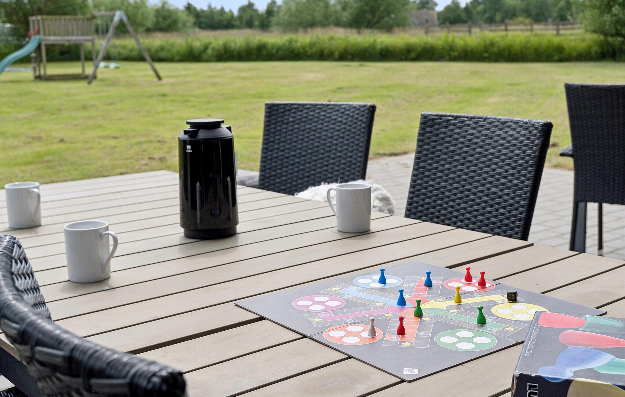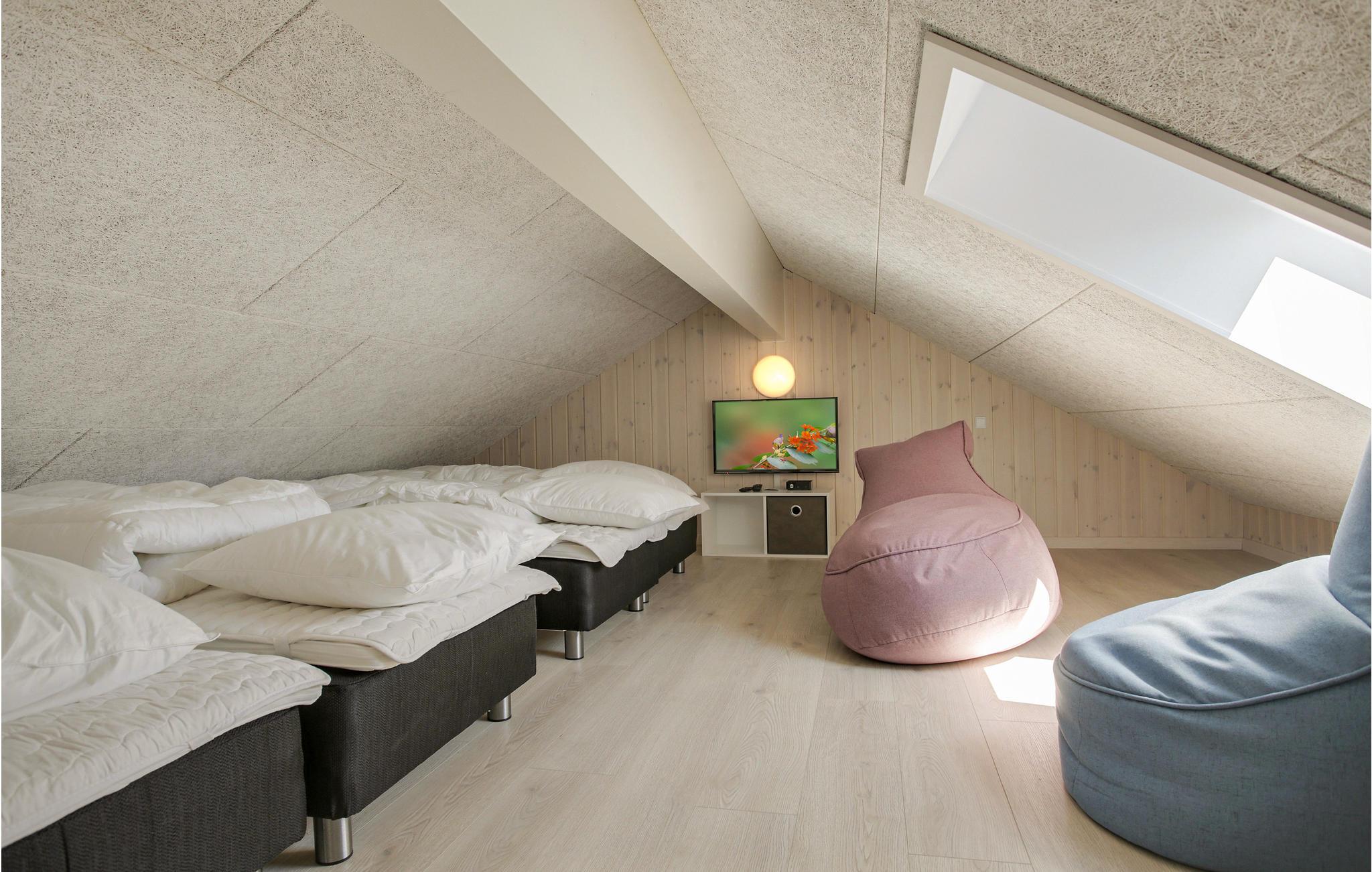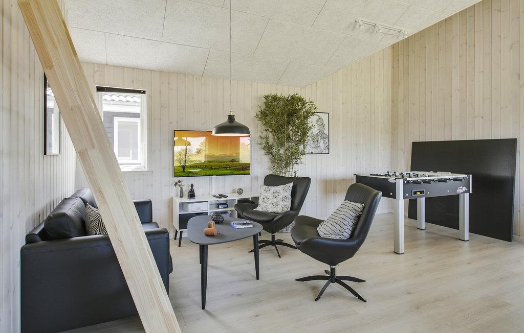 Her finder I et utroligt lækkert feriehus med aktiviteter nok til en hel ferie: bordfodbold, billard, bordtennis og dart. Aktivitetsrummet ligger lige ved siden af den store, dejlige stue med brædeovn og direkte adgang til det veludstyrede køkken. Huset har et poolrum, hvor I kan boltre jer i swimmingpool, få massage i det store 6 personers spabad og slappe af i saunaen. Huset er udstyret med komfortable møbler overalt, og har alt det udstyr der skal til, for at I føler jer hjemme.