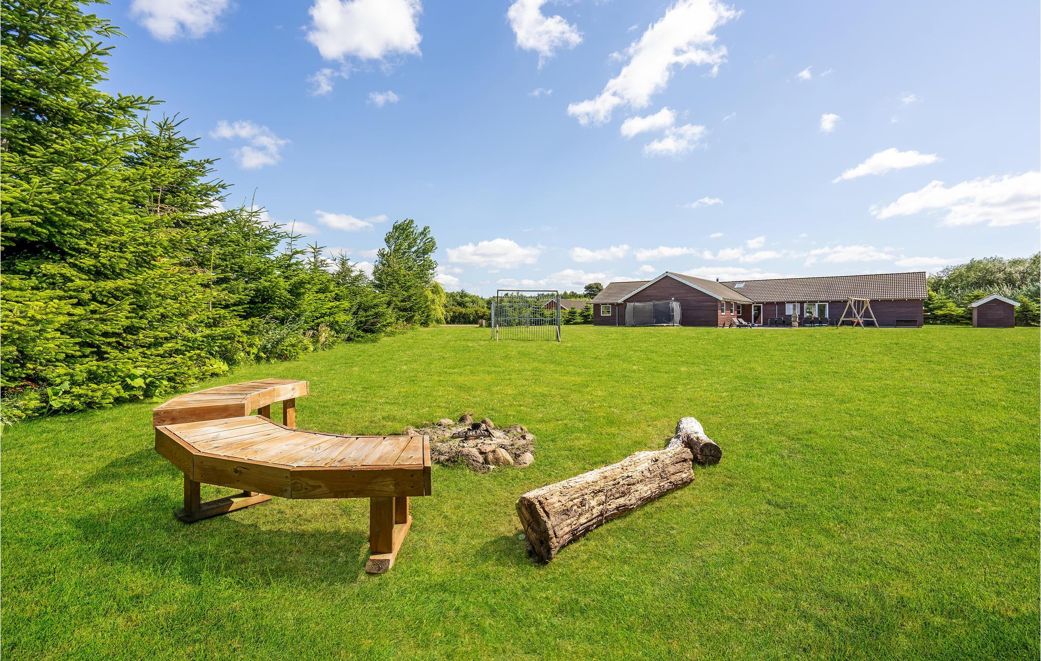 Udenfor finder I på den store naturgrund mange faciliteter, som kan aktivere hele familien. Børnene kan give den gas i timevis på trampolinen, og så kan I udfordre både store og små til et drama på fodboldbanen.