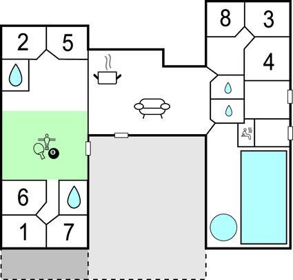 I poolrummet kan I boltre jer i timevis i den skønne, forfriskende swimmingpool eller i det fire personers spabad mens I lytter til jeres favoritmusiknumre, der flyder ud af højttalerne i rummet, slut evt. af i den velgørende sauna. Har I brug for at stryge tøj i løbet af ferien, så findes her både strygebræt og strygejern.