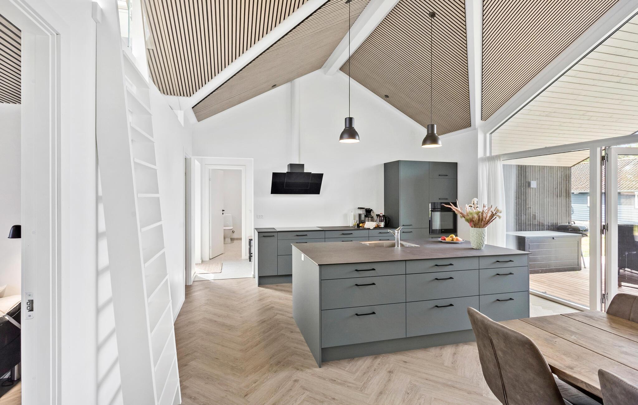 Tag den udvidede familie under armen og rejs til det sydlige Falster, hvor I i dette komfortable træhus i Marielyst får de bedste rammer for et skønt og bekymringsfrit ophold. Indvendigt emmer det af kvalitet med gennemtænkte indretningsløsninger, et komfortabelt møblement og store vinduespartier, der lyser det indre op med dagslys og giver en skøn udsigt til omgivelserne. Nyd godt af det veludstyrede køkken med køkkenø og lad kokkene tage sig god tid med madlavningen, mens andre dækker op ved spisebordet eller slapper af i stuen.