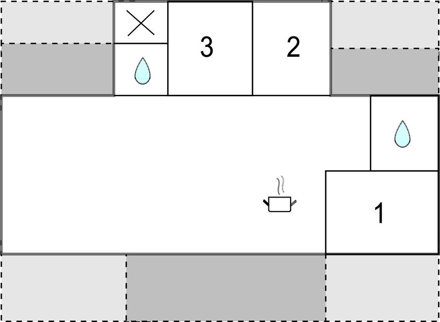 Køkkenet har v/k vand