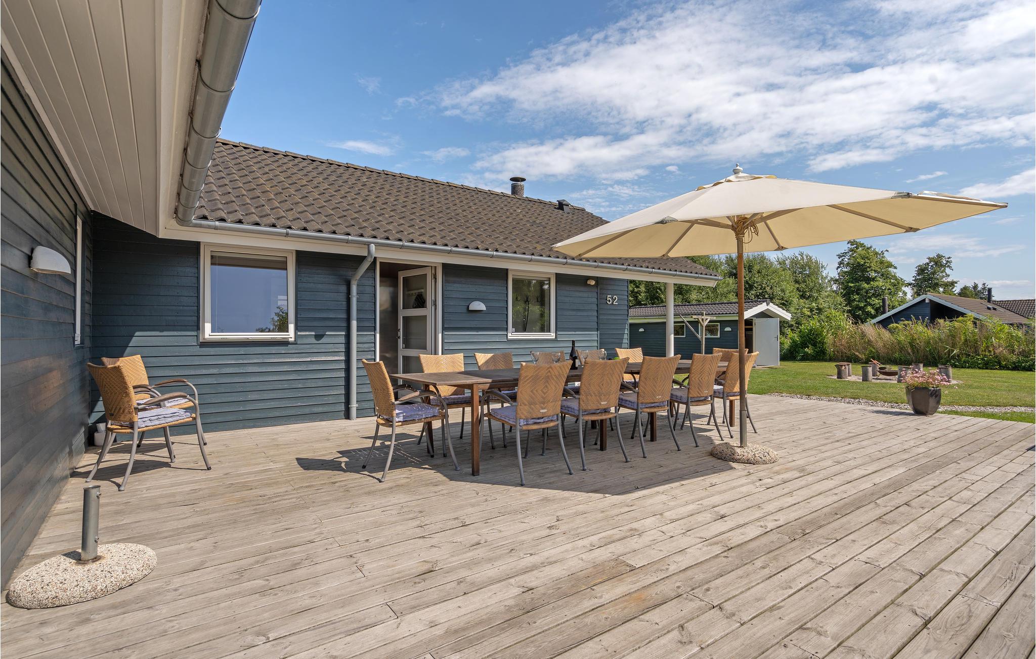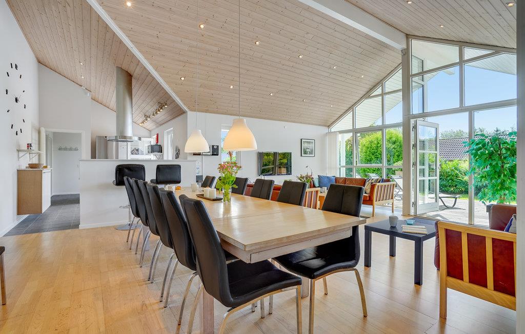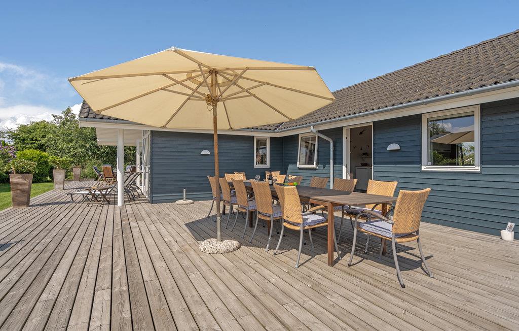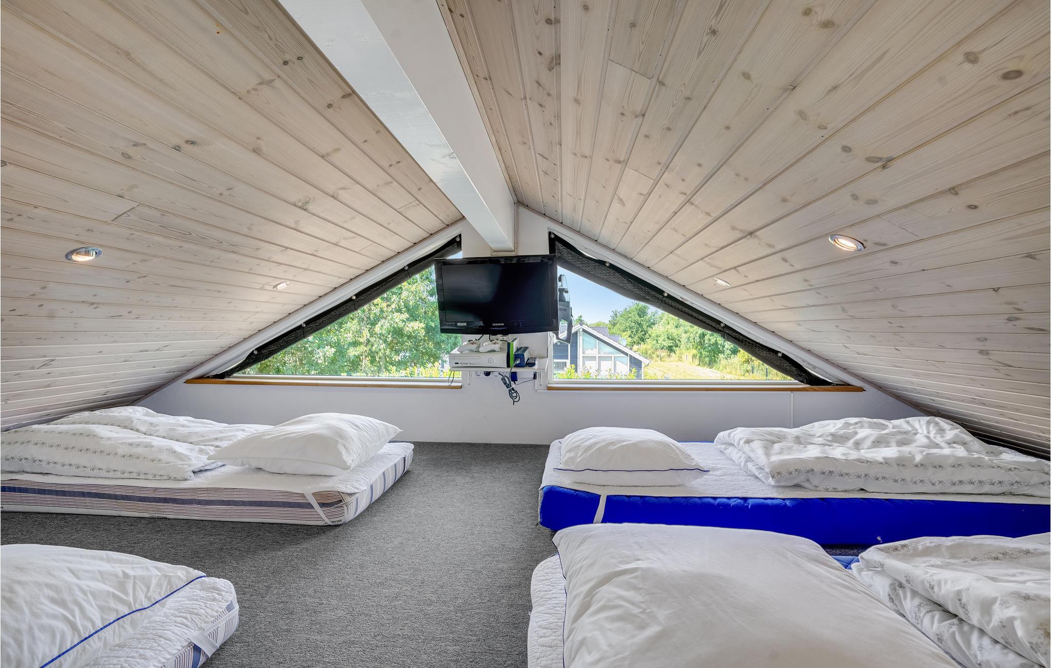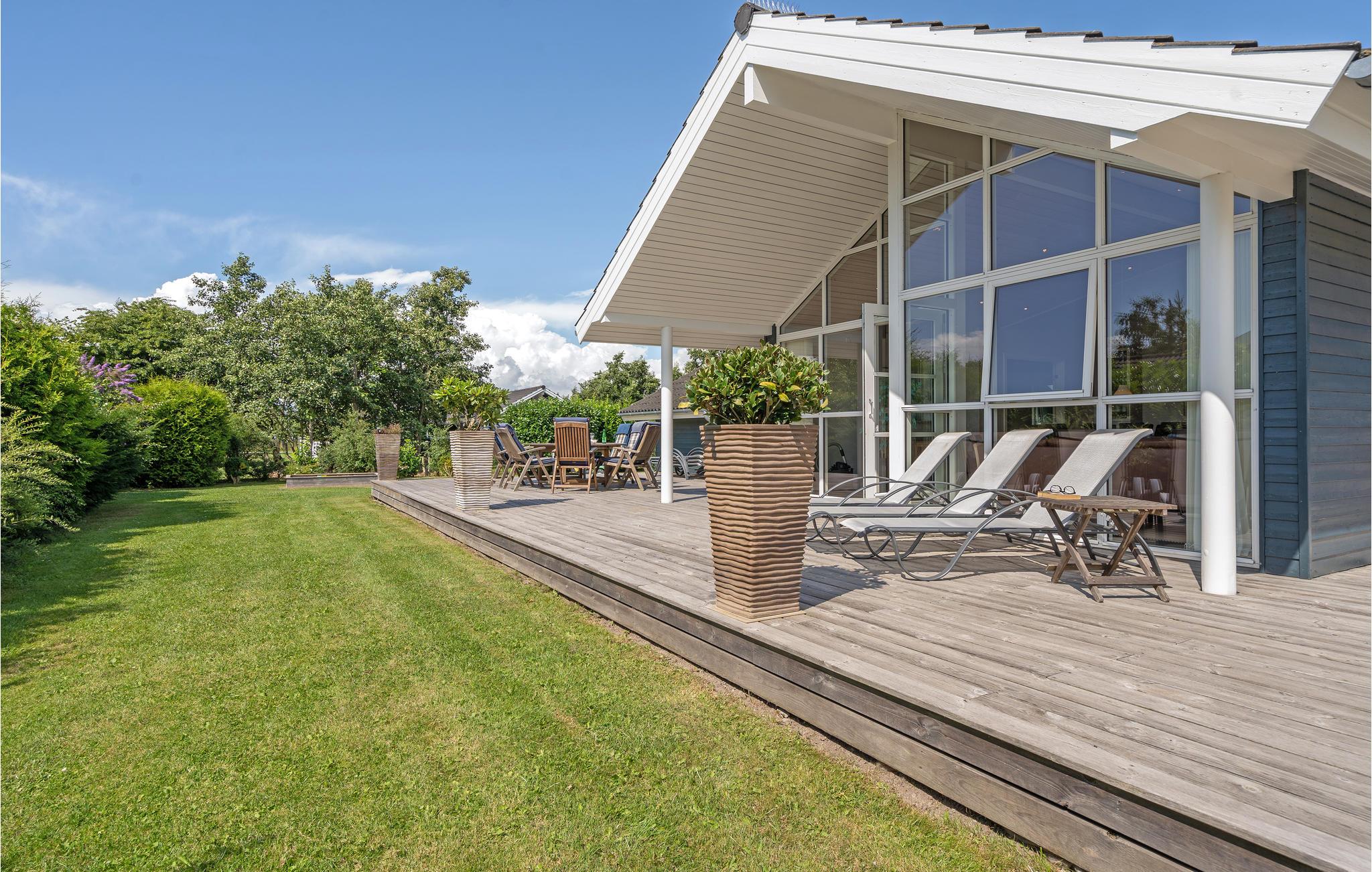 Dette stilrene hus med stort lysindfald er noget ud over det sædvanlige og ligger i et skønt feriehusområde for enden af en lukket vej og tæt på en af Danmarks bedste og mest børnevenlige badestrande med lækkert sand. Et utroligt lækkert feriehus med et særskilt aktivitetsrum, hvor der bl.a. er billard, bordtennis, dart og fladskærms-tv med Playstation/Xbox 360. Huset har fem lyse og rummelige soveværelser (hvoraf de to har tv) samt en meget stor hems med plads til fire personer, hvilket gør huset meget velegnet til flere familier. Der er gratis trådløst internet via fiber (300/300 Mbit). Huset er forsynet med både kabel-tv (f.eks. DRs kanaler, TV2 og Viasat TV3) og parabol med masser af f.eks. tyske tv-kanaler. Huset har gulvvarme og to store lyse badeværelser hvor det er muligt at slappe af i spabadet eller tage en tur i saunaen. Huset har desuden et praktisk bryggers med klinkegulv og god plads til sko og overtøj. Fra både den dejlige stue og det veludstyrede køkken er der direkte udgang til en stor solrig sydvestvendt træterrasse, hvor der er dejlig læ og solindfald fra morgen til aften, så I kan nyde ferien fuldt ud. Der er tænkt på børnene med gyngestativ, sandkasse, rutsjebane og to kæmpe legetårne med både hængebro og brandmandsstige. Haven er stor med god plads til forskellige former for boldspil, leg og udfoldelse. Der er udtag til elbil indenfor 10 meter: Rødt 5-polet CEE (3x16A) + alm. 230V (1x10A).