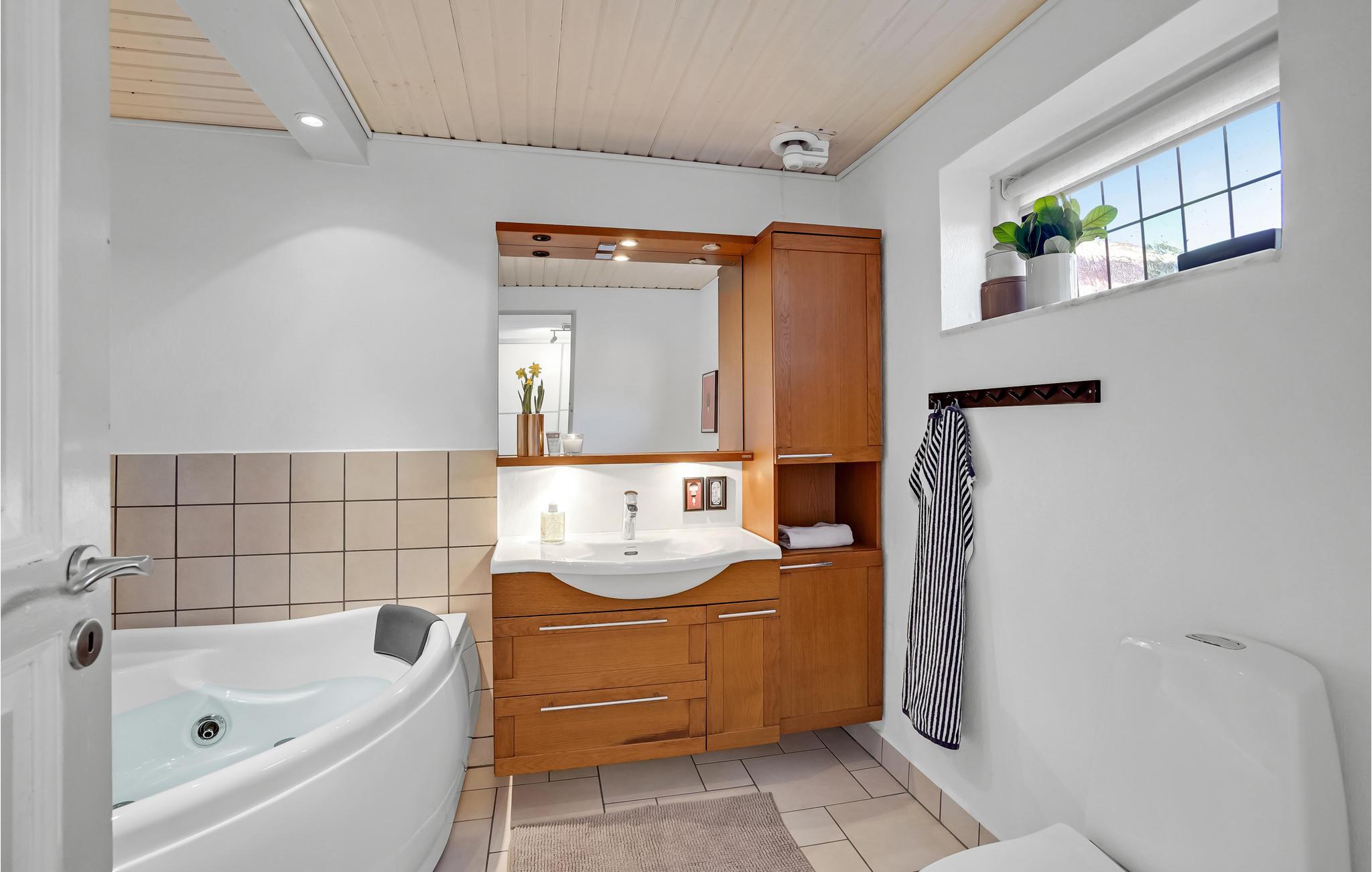 Velkommen til dette skønne feriehus, som er meget lyst, hyggeligt og imdbydende. Værelserne er moderne indrettet, veludstyrede og byder på masser af plads både i huset og i annekset. Nyd jeres feriemåltider i udestuen med udsigt over havet og slap af foran brændeovnen i de køligere årstider. I kan tilbringe en masse kvalitetstid sammen i den åbne stue og nyde rendyrket ferieafslapning i spabadet.