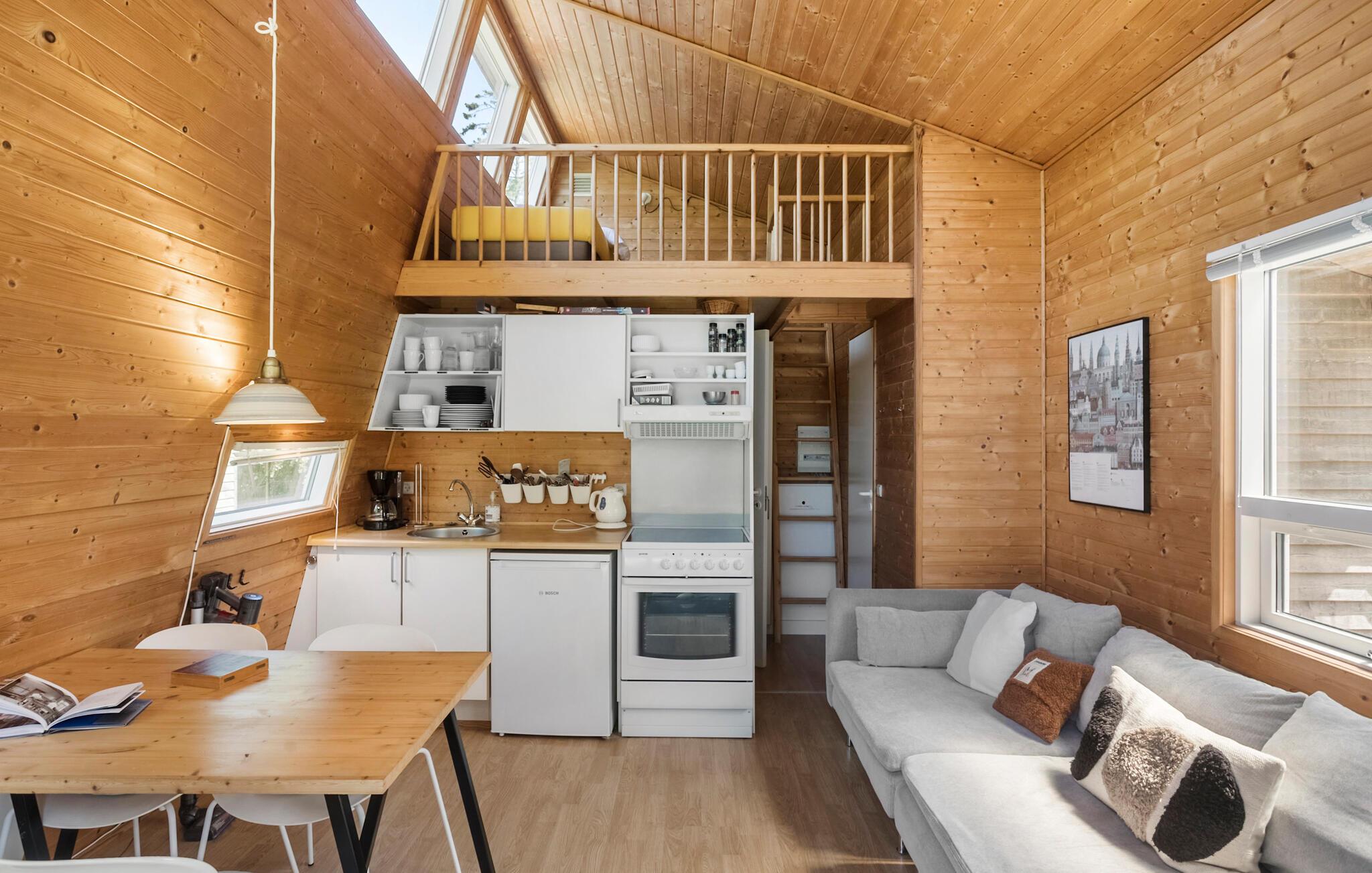 I det attraktive ferieområde Marienlyst finder I dette originalt indrettede feriehus. Det praktisk indrettede interiør er kendetegnet ved de mange træelementer og fremstår åbent og indbydende. De store vinduespartier og ovenlysvinduerne sørger selv på overskyede dage for et godt lysindfald i opholdsrummet og skaber en behagelig atmosfære. Nyd godt af hemsen, som tilbyder to hyggelige sovepladser og giver et kig ud på træerne og himlen. Dette feriehus er ideelt til en lille familie eller et par, der søger en afslappende ferie.