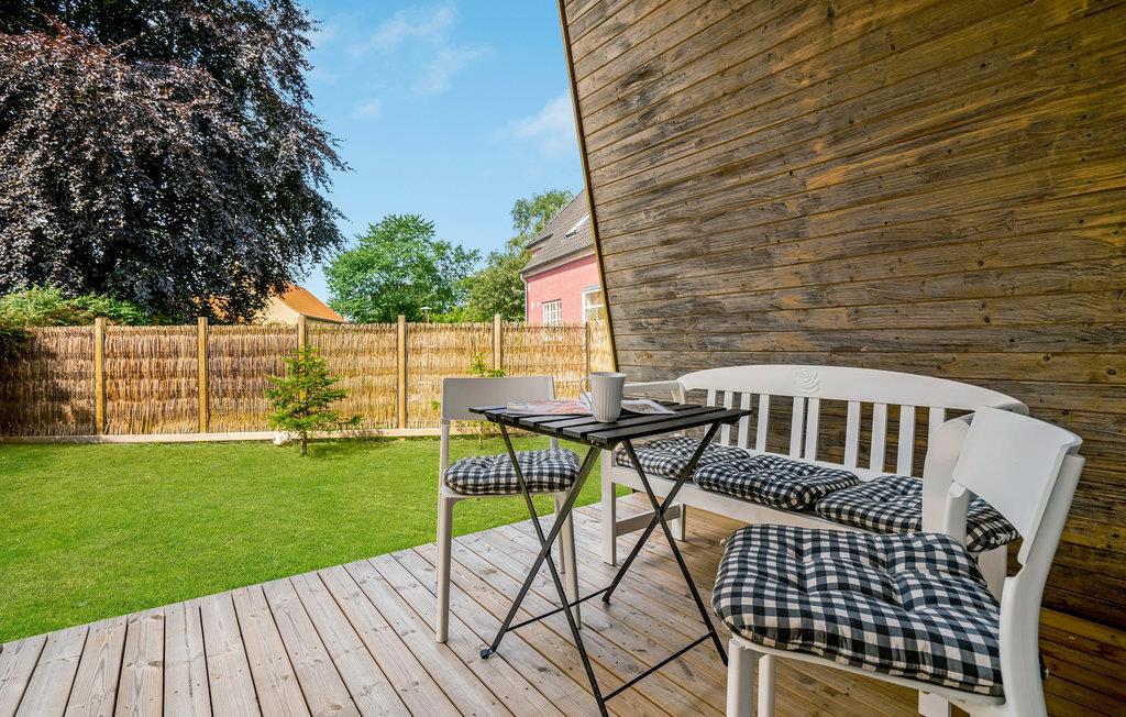 Den overdækkede terrasse indbyder til skønne timer i det fri. Nyd dagesn første kop kaffe i solskinnet, og sæt jer til rette om eftermiddagen med ferielæsning, mens børnene og jeres kære, firbenede ven leger i den friske luft. På fællesgrunden finder I en 200 m² indhegnet have.