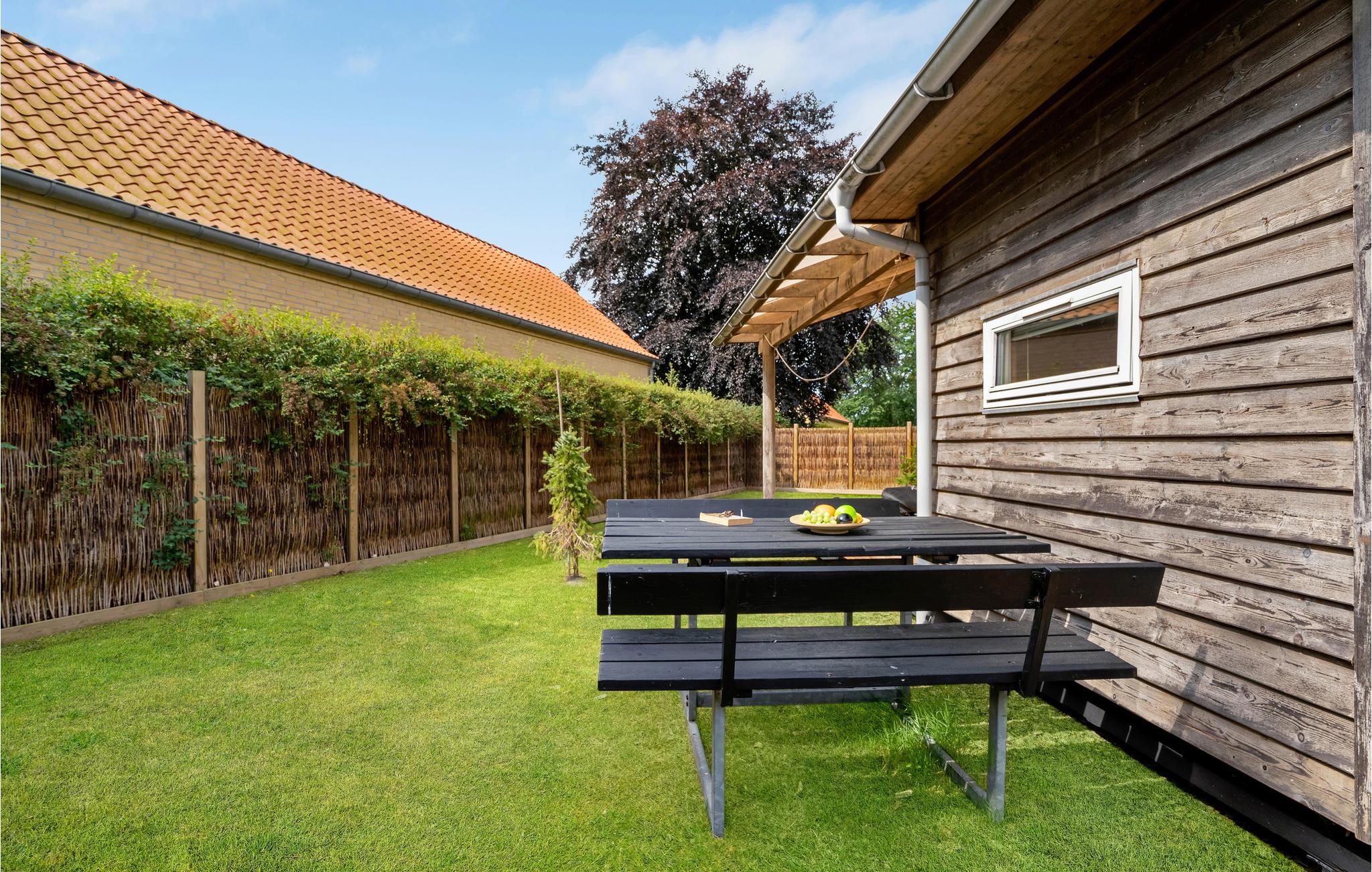 Hyggeligt feriehus med træelementer, tæt på sandstrand og stor fælles have i Marielyst.