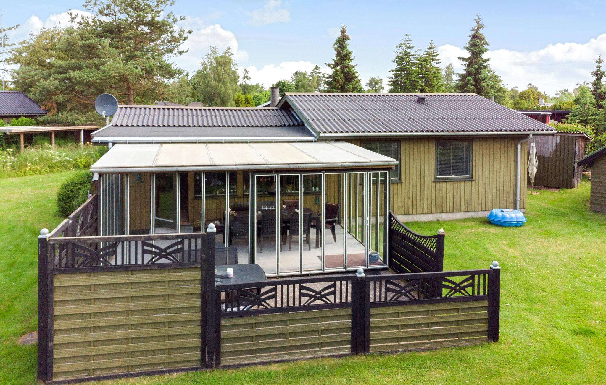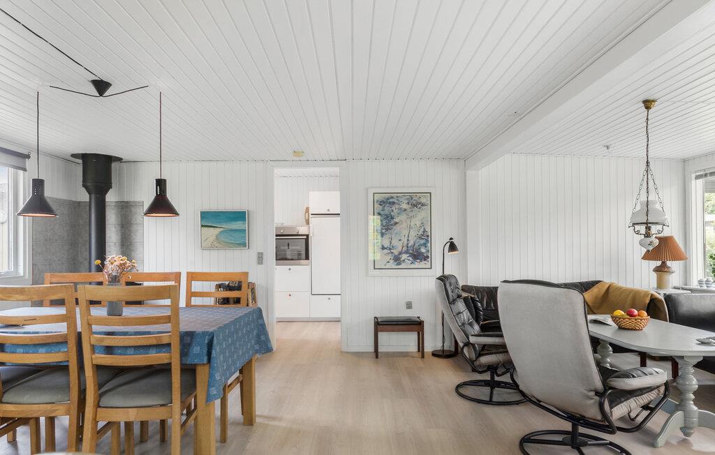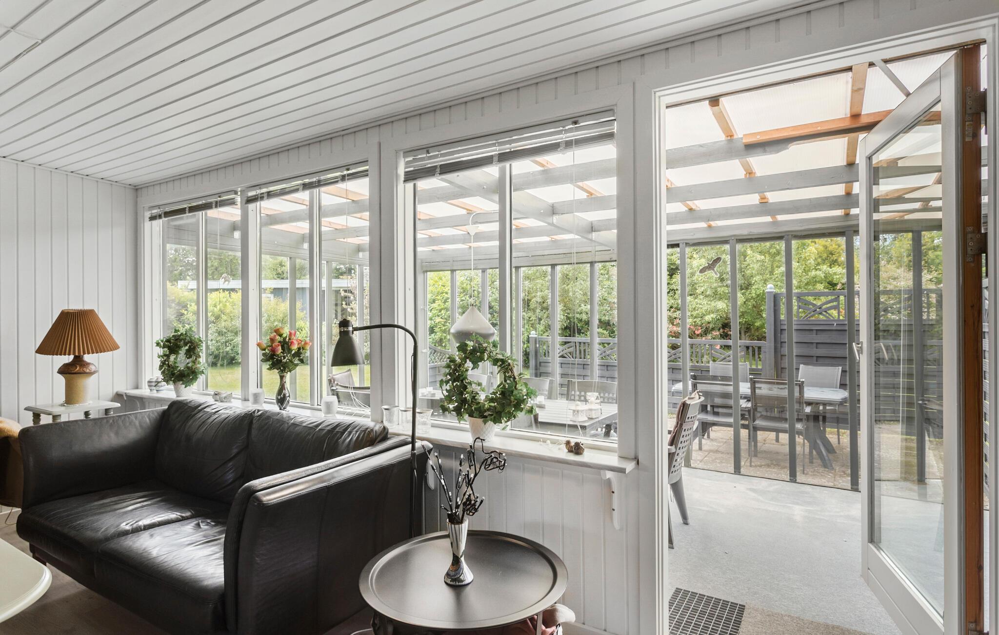 Velkommen til Falsters smukke natur, som kan få alle helt ned i tempo. Her venter dette fine sommerhus. Køkkenet giver jer gode rammer til fælles madlavning og kulinariske ferieeksperimenter. Den hyggelige opholdsstue er udstyret med komfortable lænestole og en stor hjørnesofa, så her kan I fylde aftenerne med hyggestunder, hvor I samles om film, brætspil og lækre snacks. Indretningen er både funktionel og klassisk, så her kan alle sænke skuldrene og koncentrere sig om at holde fri. Når vejret er lunt, kan I rykke ud på den solrige terrasse eller spille bold på græsplænen. Udestuen er skøn til de solrige dage med kølige temperaturer, og vender I hjem fra en frisk gåtur, kan I gøre det ekstra stemningsfuldt med ild i brændeovnen.