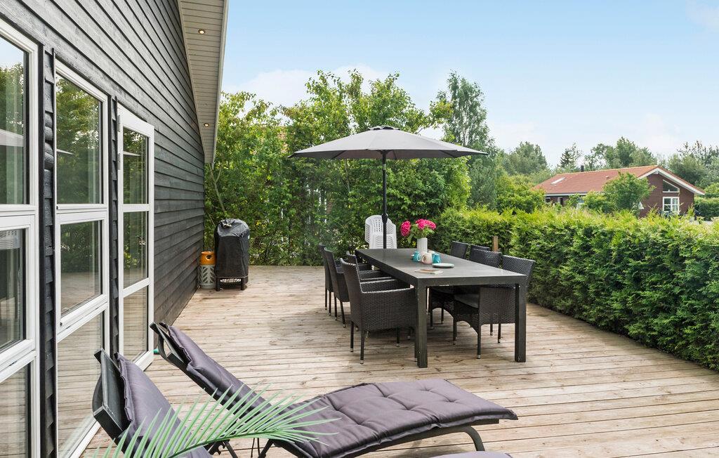 Udendørs finder I en stor træterrasse med havemøbler og grill, hvor I let kan samle familien til hyggelige grillmiddage på de lune sommeraftener. Familiens yngste medlemmer vil elske haven, hvor de kan få mange timer til at gå, her er nemlig både gyngestativ, sandkasse og masser af plads til leg og spil.