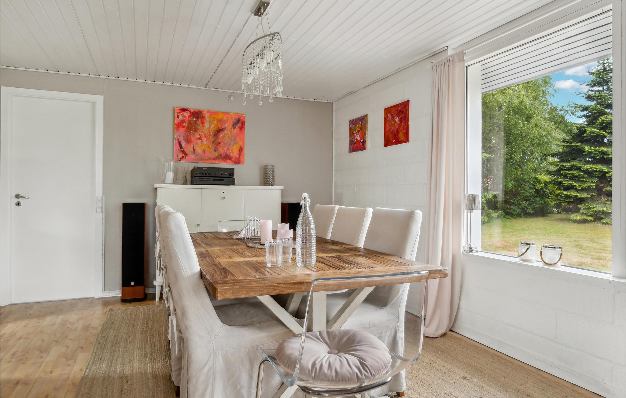 Velkommen til dette indbydende sommerhus, som er lyst og romantisk indrettet. Her får I en skøn ramme om de rolige dage og en god base mellem jeres udflugter rundt på øen. Både indendørs og udendørs kan I samles i hyggelige miljøer og planlægge dagens aktiviteter.
