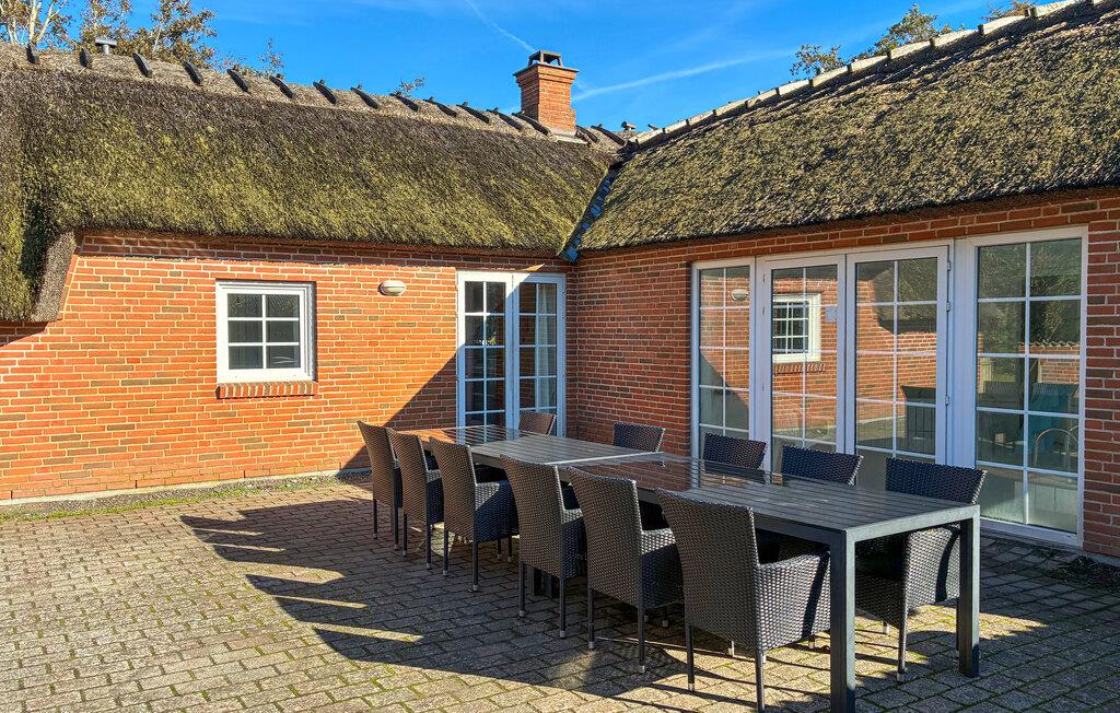 Velkommen til dette charmerende stråtækte hus, hvor I både kan se frem til god komfort og mange aktivitetsmuligheder. I stuen står de bløde møbler klar, når I vender hjem fra dagens eventyr. Snup en omgang billard, se en film sammen eller afslut dagen med en læsestund foran brændeovnen. I det moderne køkken kan I tilberede lækre måltider og nyde dem ved det lange spisebord – her er der plads til alle. Forkæl jer selv i wellnessafdelingen med spabad og sauna, mens andre har det sjovt i poolen med den lille rutsjebane.