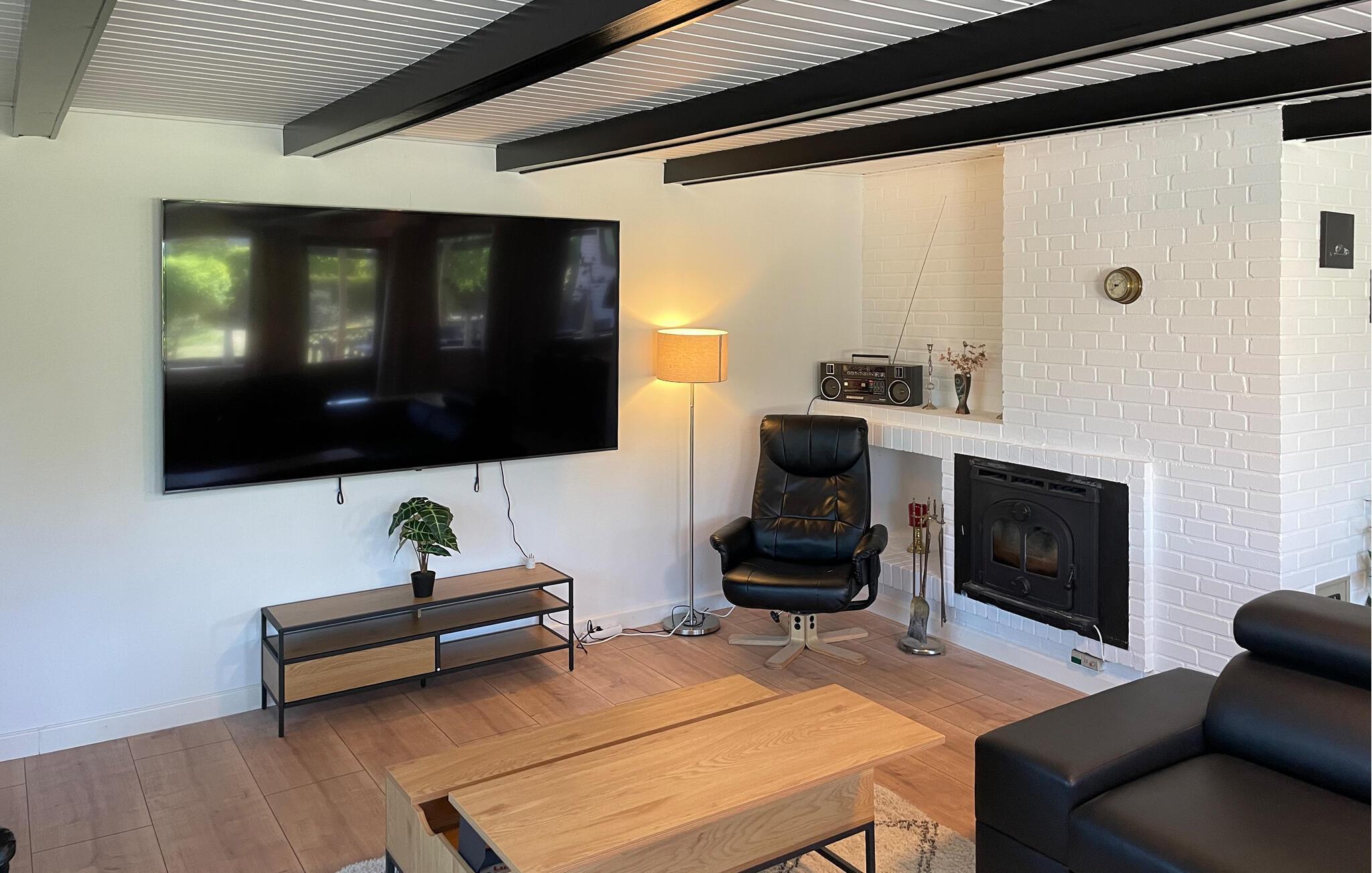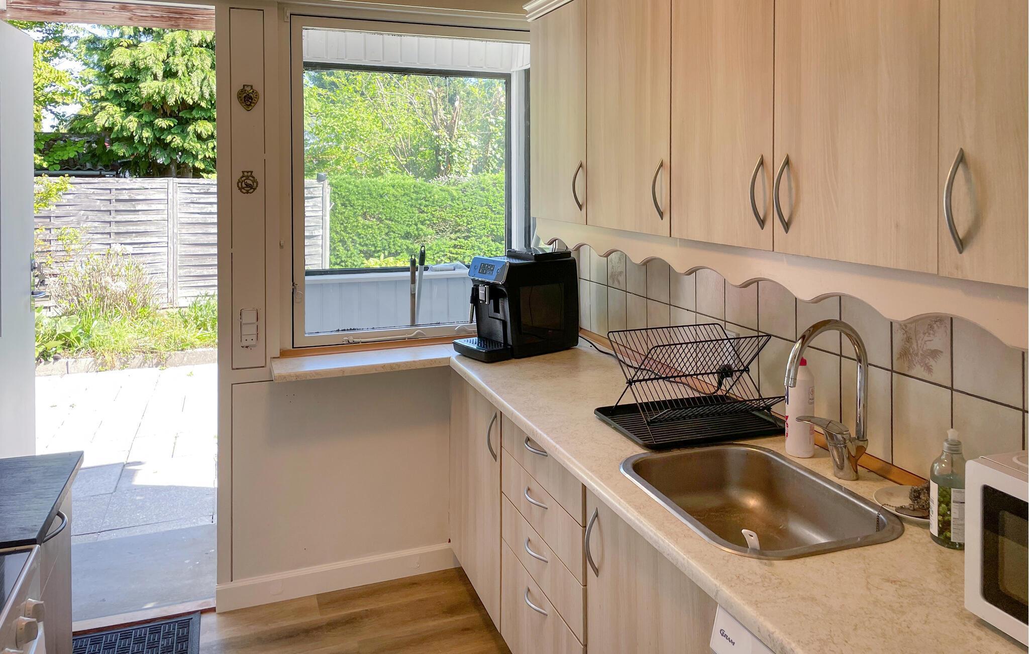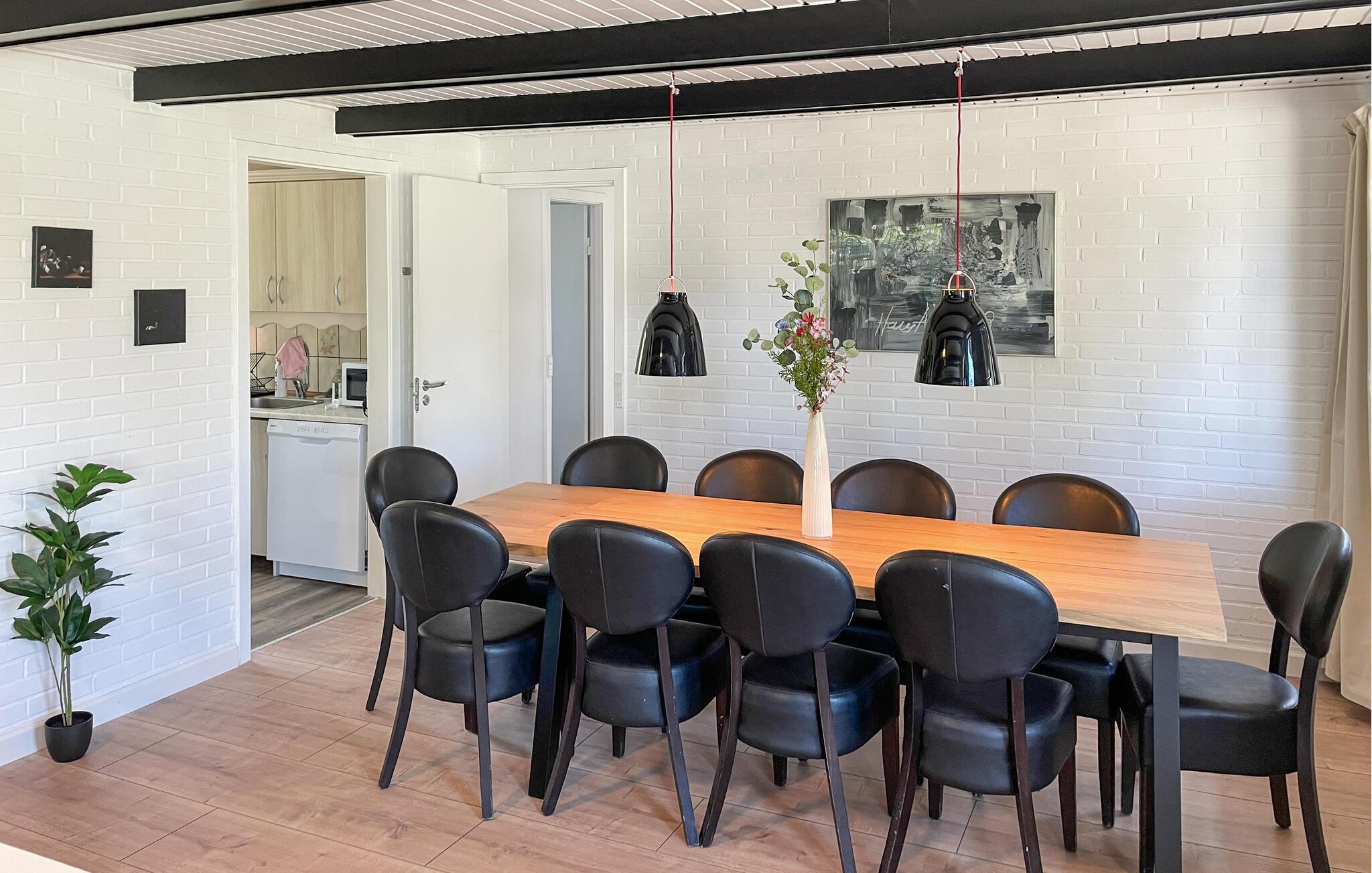 Dette feriehus er et behageligt sted for en familieferie. Begynd dagene med morgenmad ved det smukke spisebord, mens I nyder den velholdte have. Den åbne stue med store vinduer skaber en venlig atmosfære. Slap af i sofagruppen med en god bog eller se en film. I kan også snuppe et spil bordfodbold.