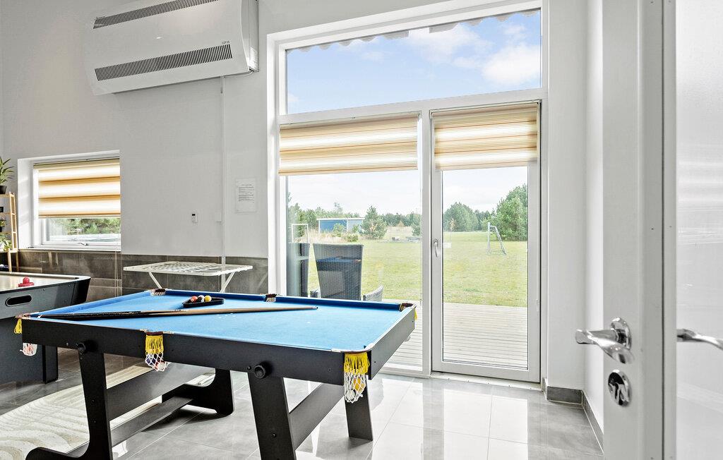 På terrassen kan I bruge grillen til at tilberede lækre retter, mens jeres børn leger i haven. Det generøse udendørsområde indbyder til aktiviteter som fodbold eller petanque. Også trampolinen sørger for sjov for både unge og gamle. Indendørs venter flere aktiviteter som billard, bordfodbold og airhockey. Slap af fuldt ud i husets egen sauna og whirlpool.