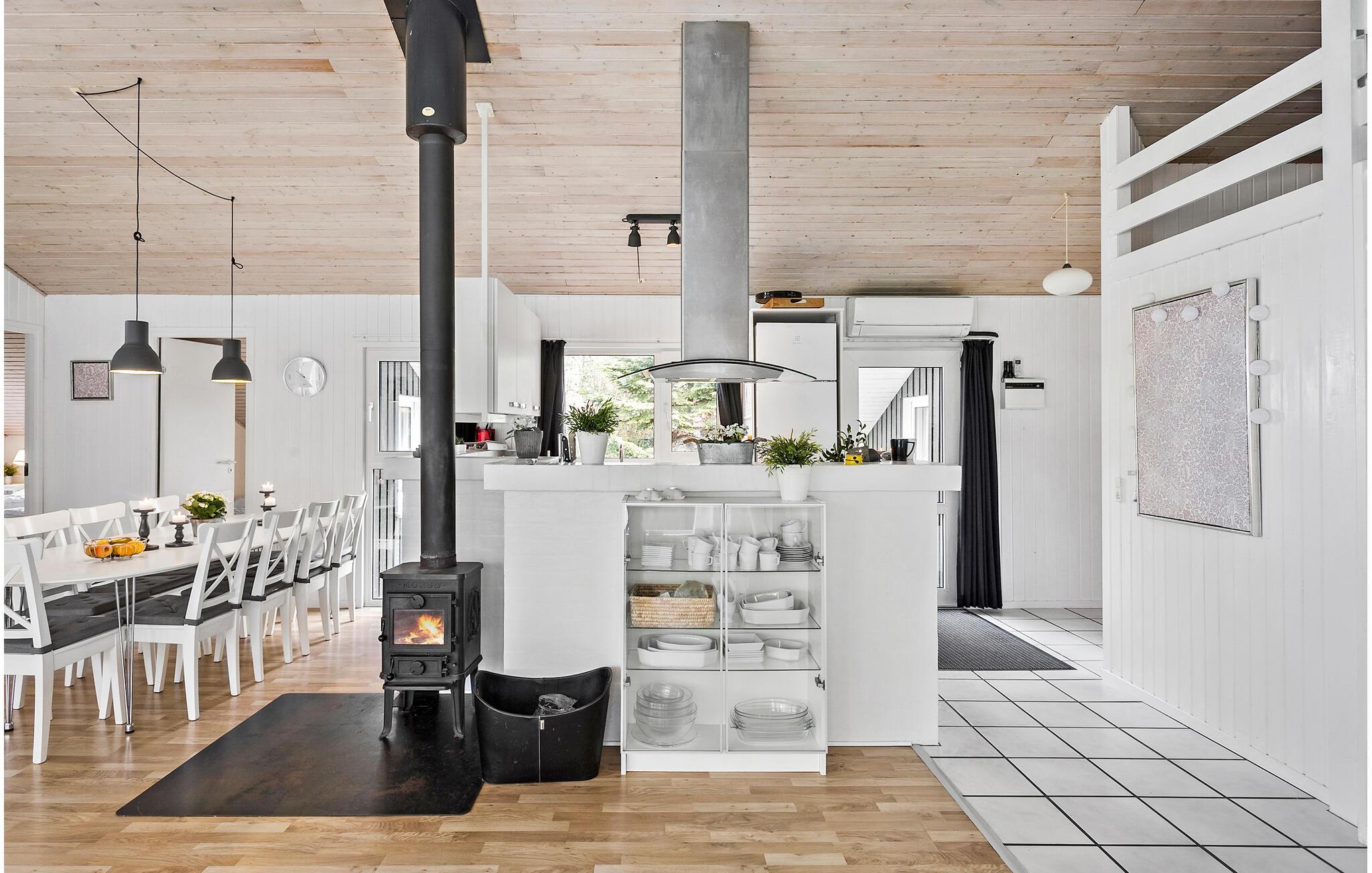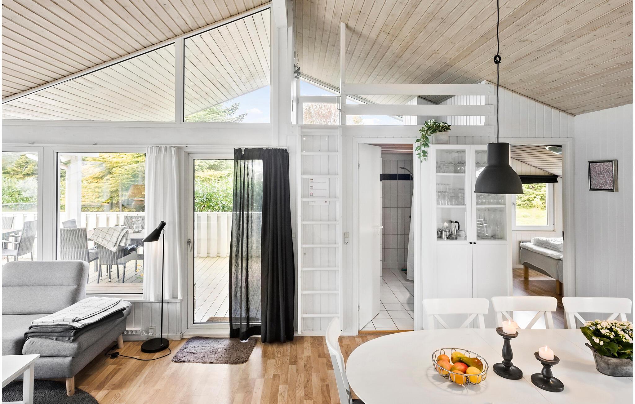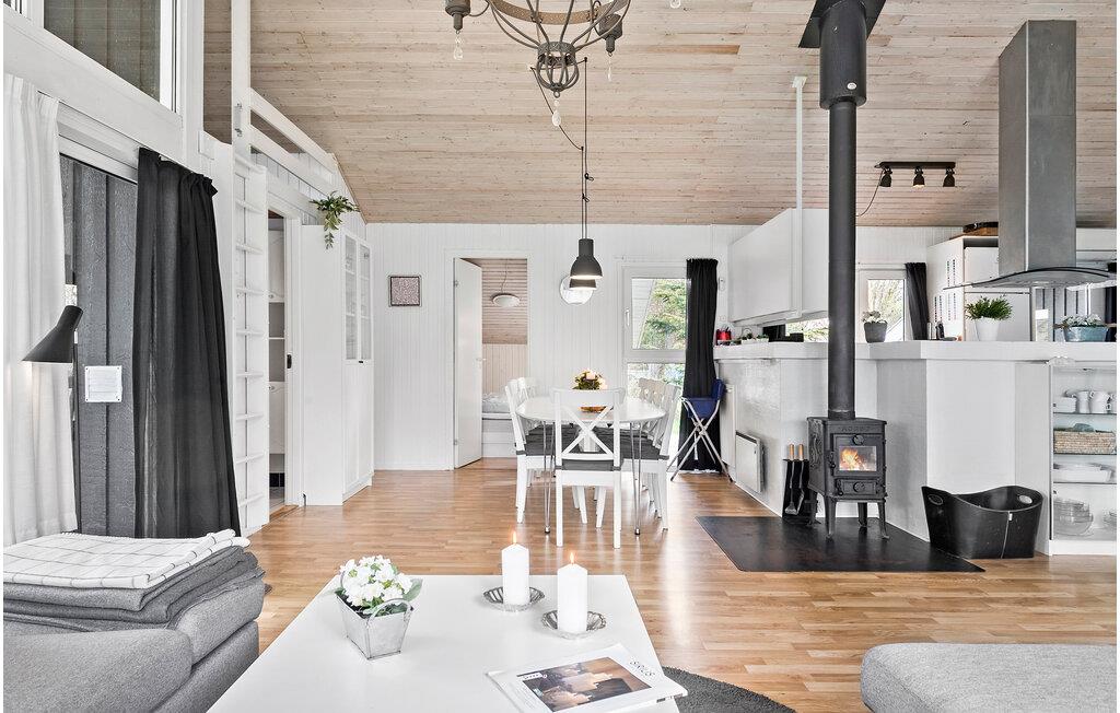 Pænt, stilrent og moderne, godt vedligeholdt feriehus med indendørs swimmingpool i et populært område. Der er fire gode soverum opdelt i to afdelinger på hver side af den kombinerede stue/køkkenafdeling, og gør dermed huset perfekt til to familier. Fra den hyggelige opholdsstue kan I sidde og holde øje med familiens vandhunde, som tumler sig i swimmingpoolen. Huset har en sydvestvendt terrasse, med komfortable havemøbler hvor I kan nyde solens stråler om dagen, og grille om aftenen. Naturgrunden er plan, med god plads til boldspil og med flere legeredskaber bl.a. gynge og sandkasse. Huset ligger 15 min. gåafstand til byens centrum med det livlige og hyggelige torv, og de mange gode butikker, restauranter og cafeer.