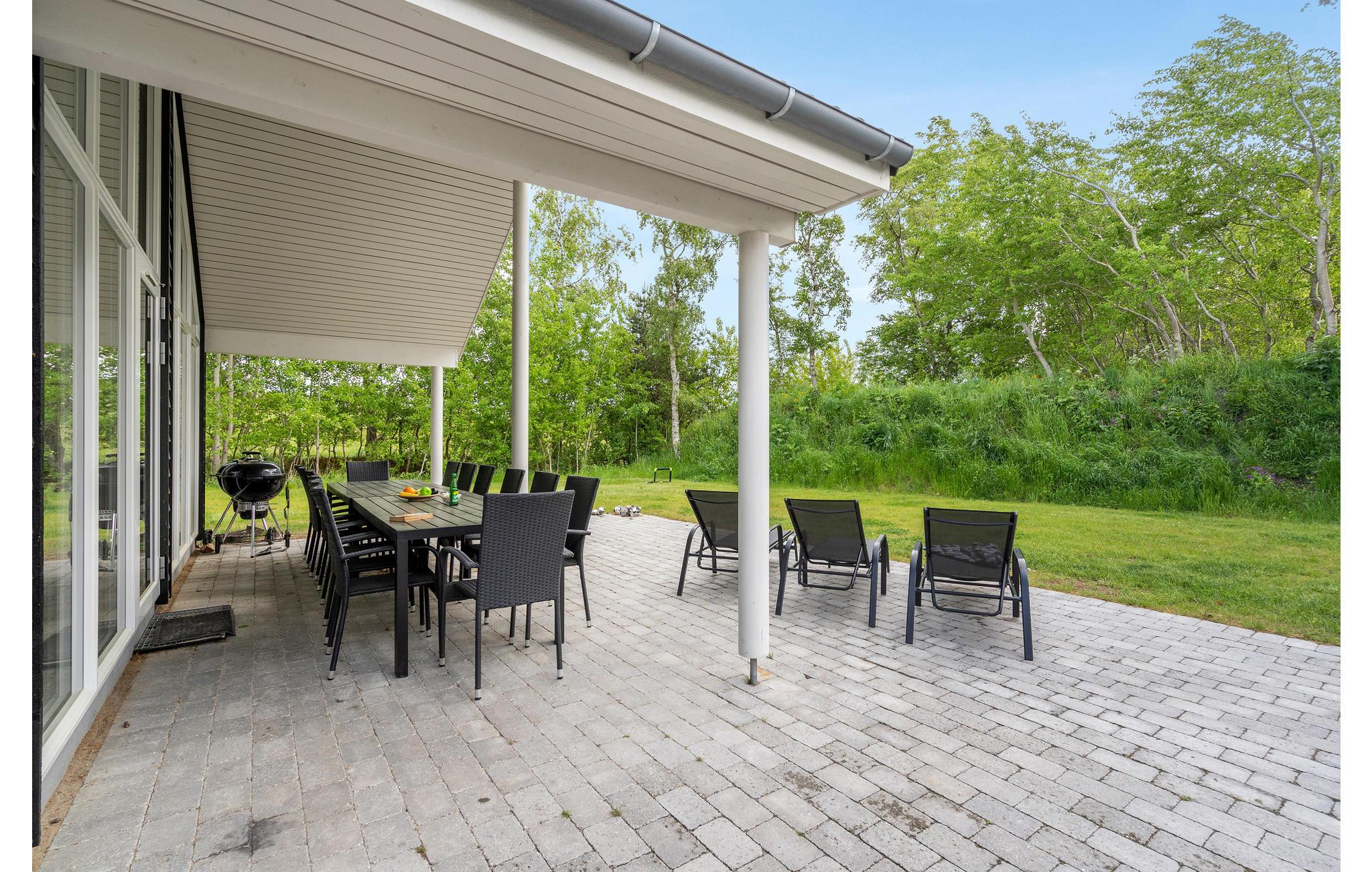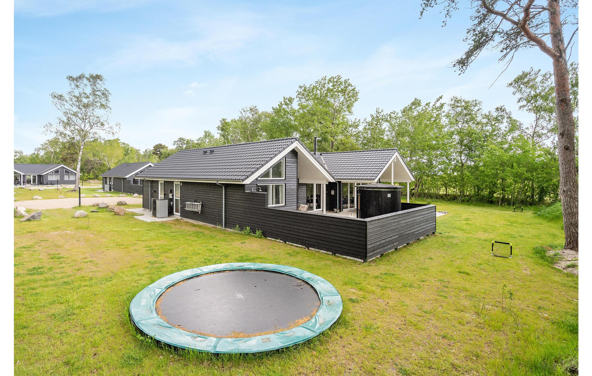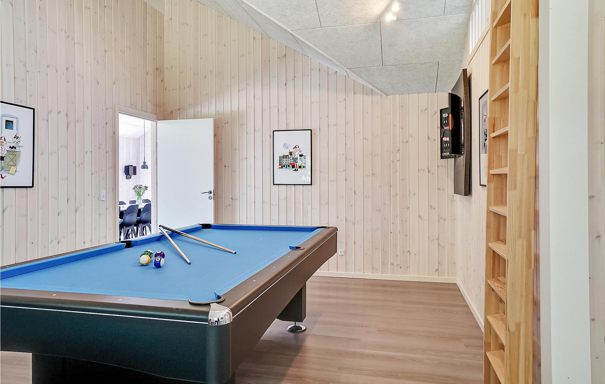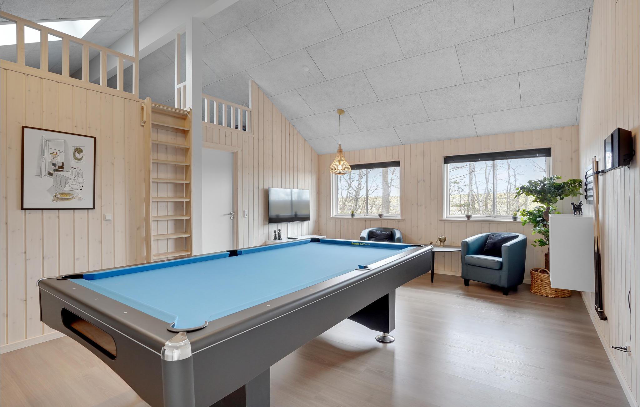 Når vejret er godt, kan I nyde dagens måltider på den hyggelige og delvist overdækkede terrasse, hvor der også er grill. Hop i det udendørs boblebad og afslut dagen med en afslappende tur i saunaen. Børnene kan se frem til mange timers sjov med trampolinen og sandkassen. Hvis vejret ikke passer til udendørsaktiviteter eller en svømmetur på stranden, kan I bruge poolen i sommerhusets wellness-sektion. I kan spille bordtennis, billard og dart i husets aktivitetsrum.