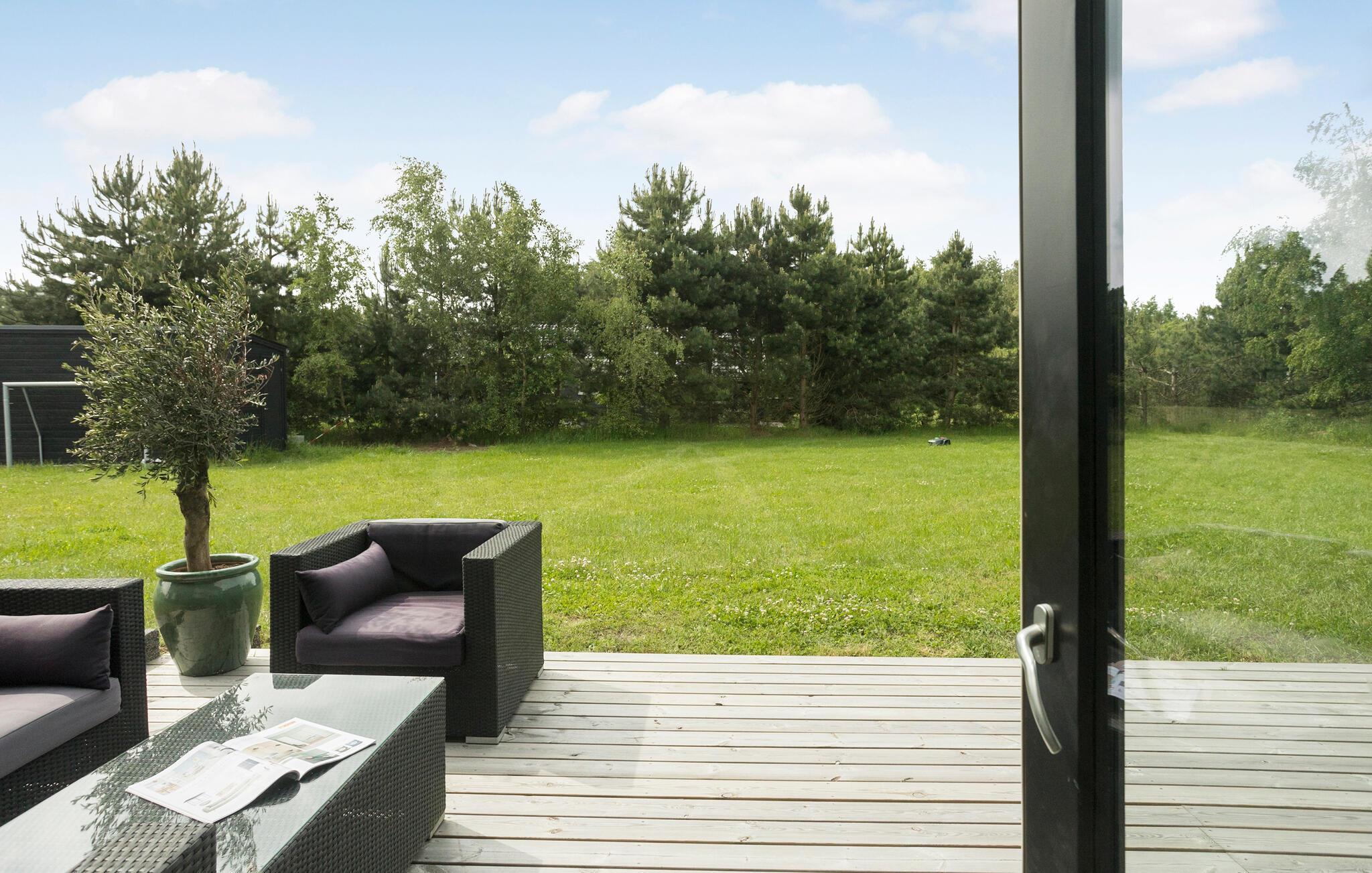 Om sommeren kan I også solbade på den store terrasse. Brug grillen til at tilberede lækre måltider, mens børnene leger i haven. Fodbold, trampolin, legetårn, her er noget for enhver smag. Vildmarksbadet på terrassen byder på afslappende timer i vandet under åben himmel.