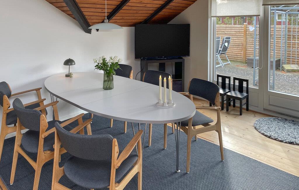 Dette sommerhus byder på skønne rammer for en ø-ferie med hele familien. Her er plads til fælles oplevelser, afslappende timer og hyggeaftener. Beliggenheden er ideel, fordi den smukke sandstrand Marielyst på Falster ikke ligger langt fra jeres hus og lægger op til afslappende dage ved vandet. Nyd den unikke natur og læg hverdagen bag jer. Begynd dagene i det rummelige køkken og tilbered en lækker morgenmad sammen. Det smukke spisebord er det ideelle sted til hyggelige måltider og planlægning af dagens aktiviteter.
