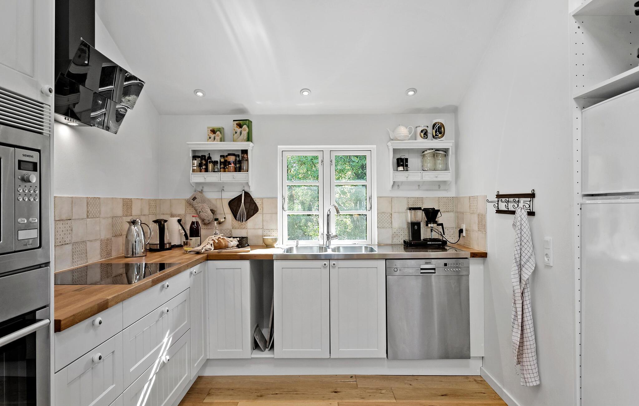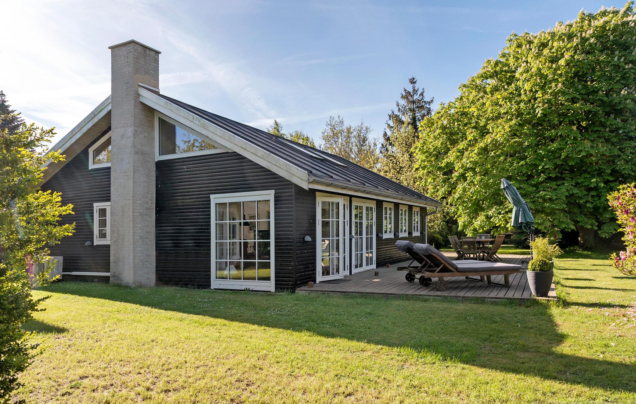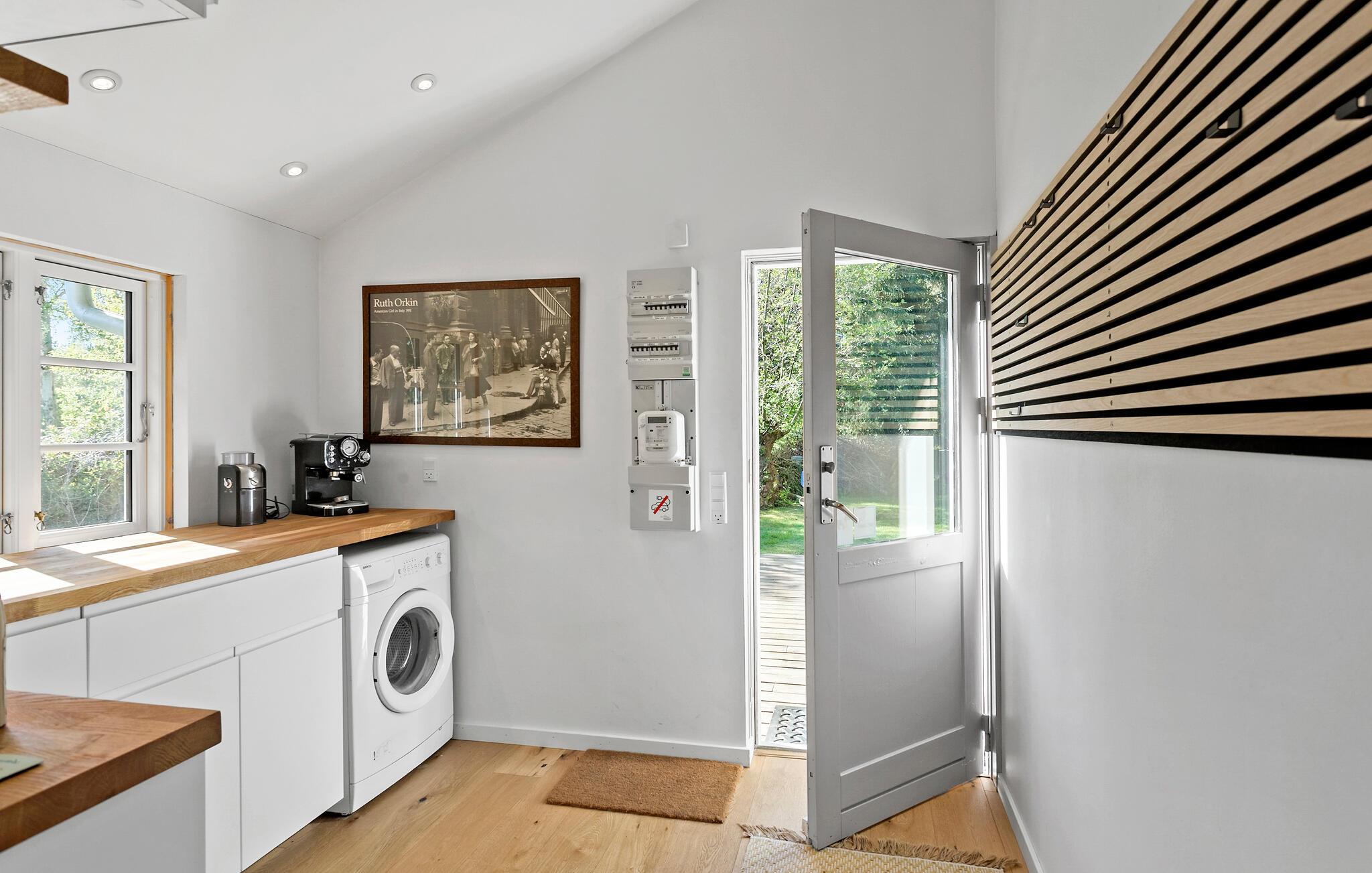 Det stilfulde og komfortable hus giver hele familien mulighed for at nyde en velfortjent pause fra hverdagen. Begynd jeres dage med en lækker morgenmad ved spisebordet eller på den solrige terrasse, hvor I kan nyde den friske luft og udsigten til det grønne. Det store opholdsområde med de stemningsfulde træbjælker i loftet og de store vinduespartier lader masser af lys komme ind og byder på en herlig udsigt til den vidtstrakte have. Hyg jer i de behagelige sofaer, og slap af med en god film eller en spændende bog.