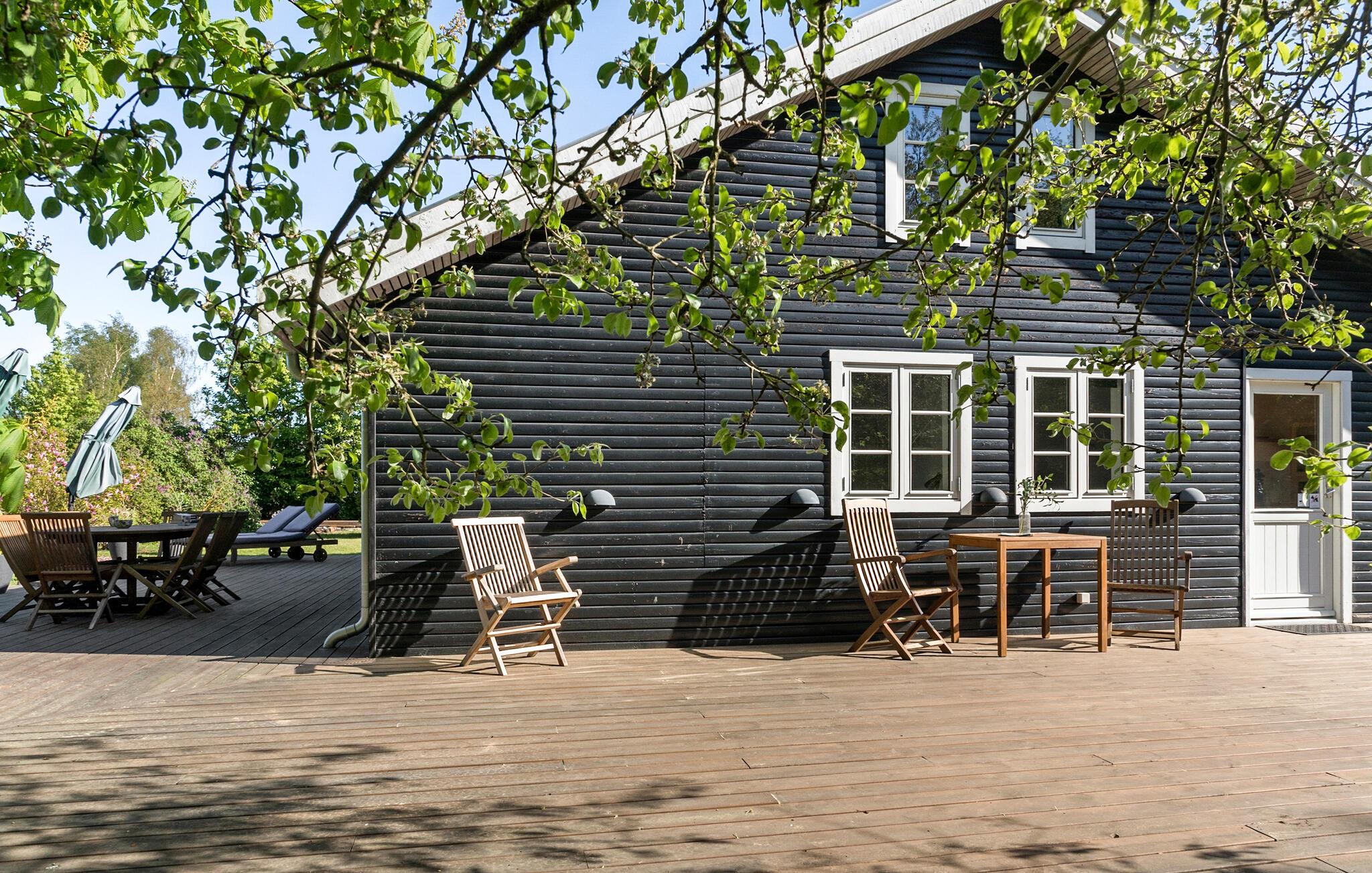 Brug grillen på terrassen til at tilberede lækre måltider, mens børnene leger i haven. Det store udendørsområde byder på mange muligheder for aktiviteter som for eksempel fodbold eller andre boldspil. Vildmarksbadet på terrassen indbyder til afslappende timer under åben himmel og giver jer mulighed for at glemme alt om dagligdagens trummerum. Også saunaen sørger for dejlig afslapning.