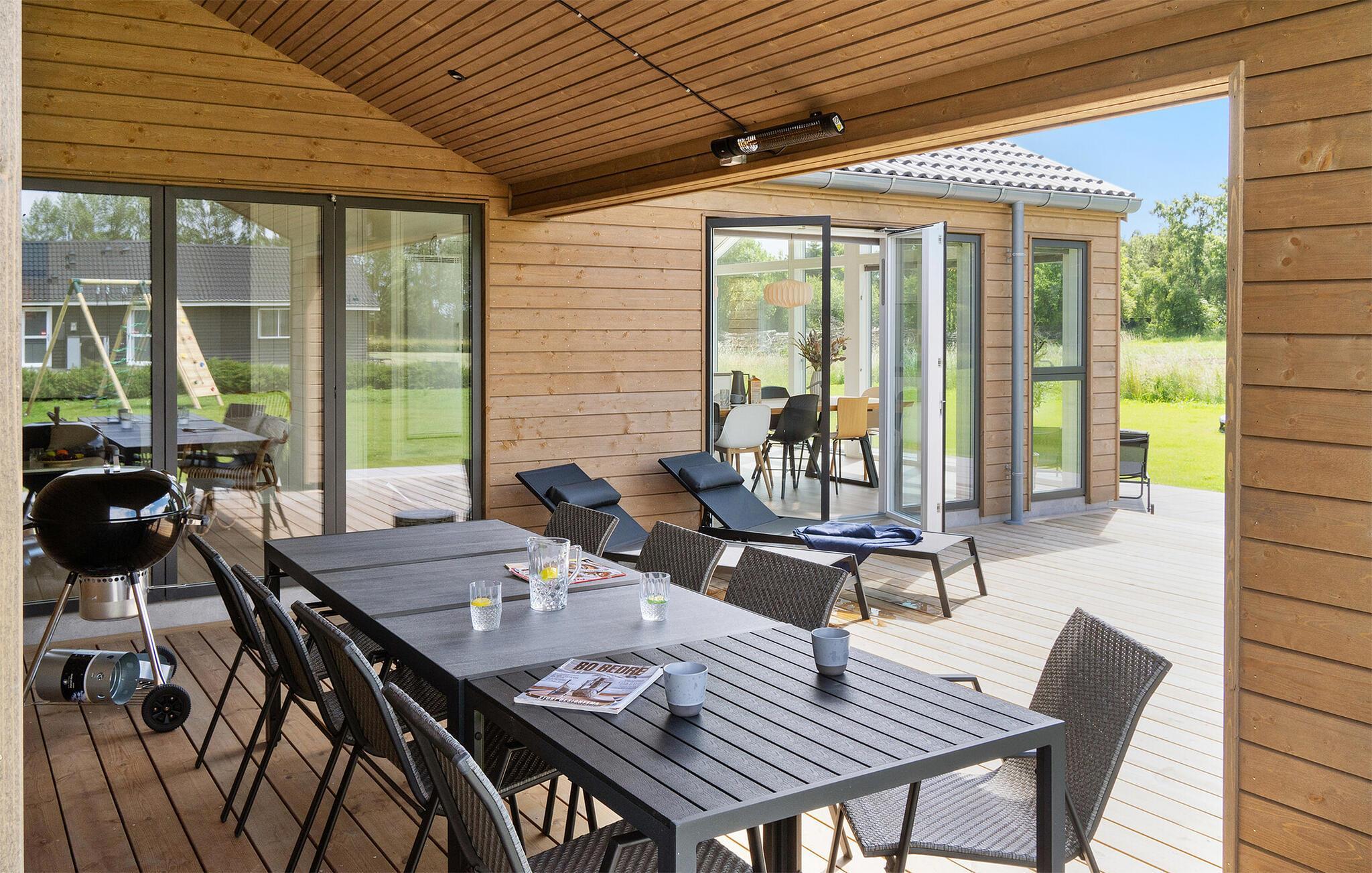 På de varme dage kan I nyde solen lige fra morgenstunden på den store terrasse. Sæt jer godt til rette med morgenkaffen, indsnus den friske luft og hold øje med børnene, der løber rundt og leger på jeres helt egen legeplads. Og måske I skal forkæle jer selv med lidt lækker aften-wellness i saunaen eller spabadet?