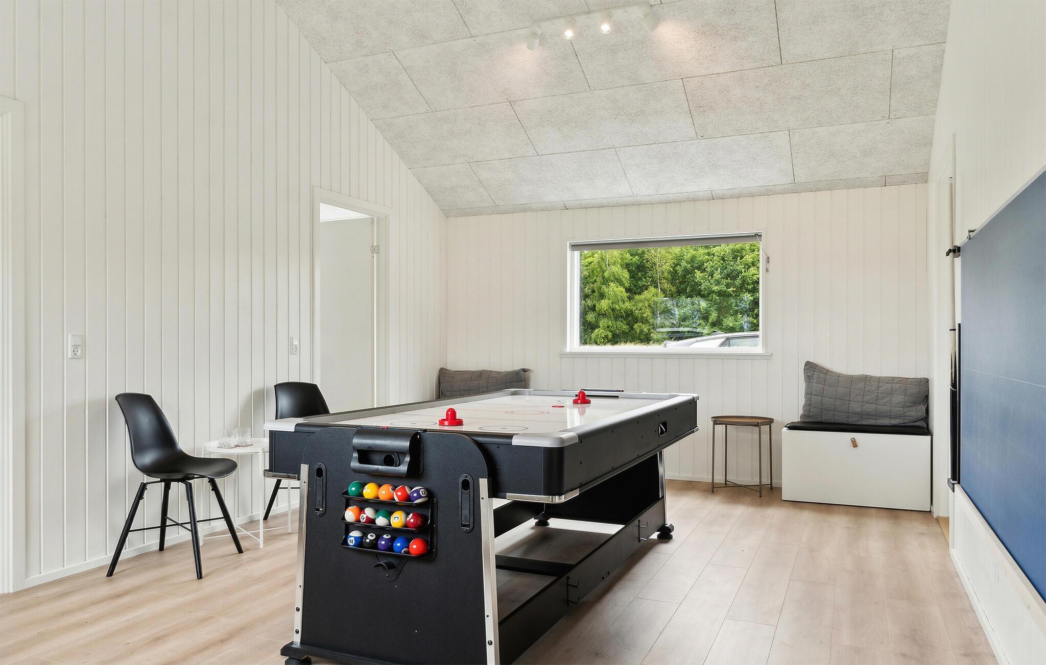 Hvis I er på udkig efter en veludstyret bolig til årets ferie med hele den udvidede familie, er dette lækre hus ved Marielyst det helt rette valg for jer. Her får I, ude som inde, en masse plads at boltre jer på og en lang række faciliteter, der gør jeres ophold sjovt og komfortabelt på tværs af generationerne. Indvendigt emmer det af kvalitet over hele linjen med velvalgte materialer, komfortable møbler og store vinduespartier, der giver dejlige lysindfald og udsigt til det grønne. Køkkenet er moderne og fuldt udstyret, så lad familiens kokke tage sig god tid med madlavningen, mens andre snupper et slag bordtennis eller pool eller dækker op til aftensmaden ved spisebordet.