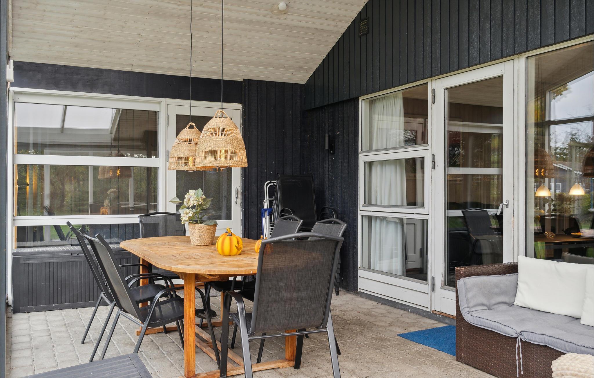 I Marielyst ligger dette velindrettede feriehus af sten med både åben og overdækket terrasse.