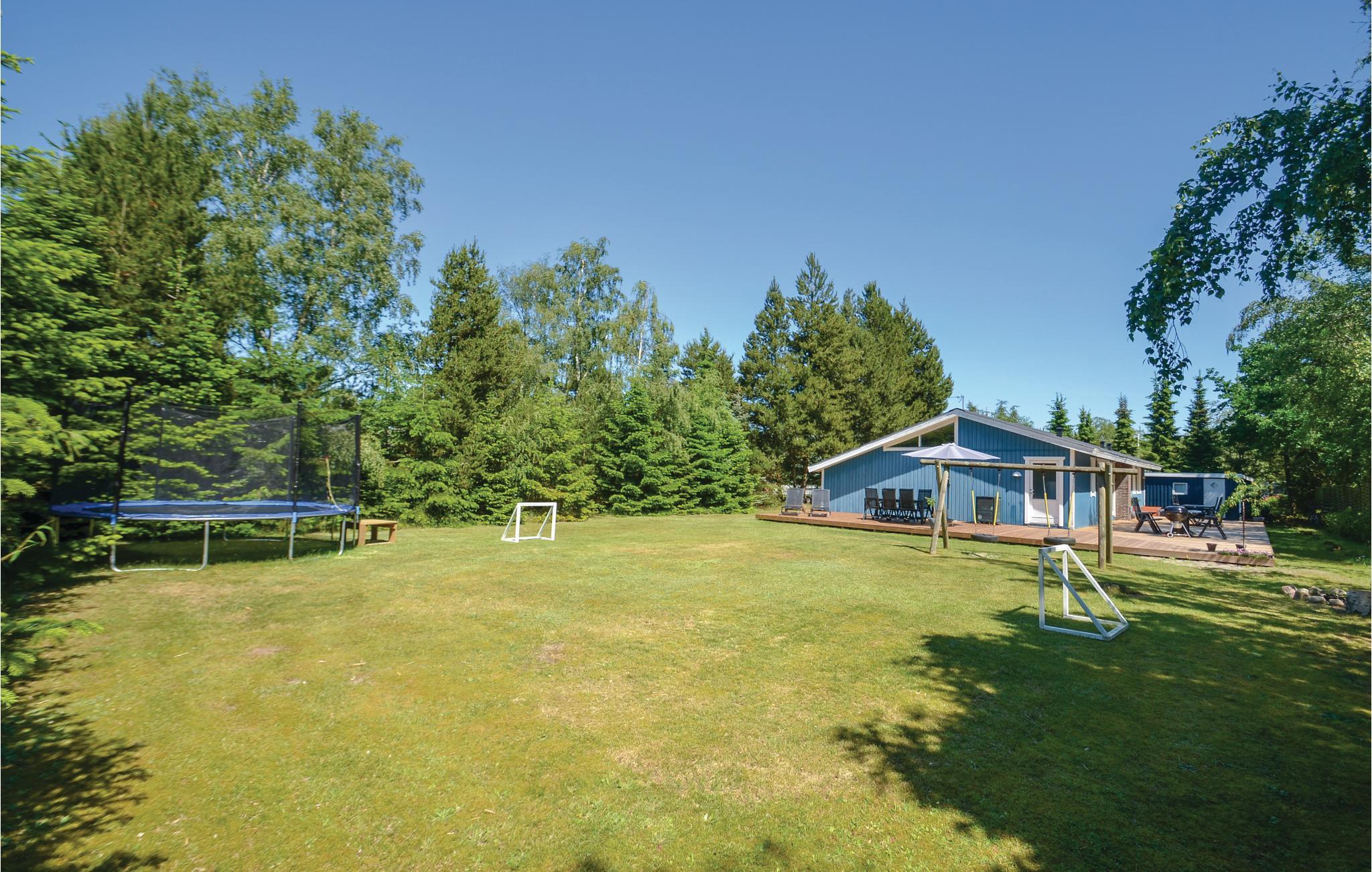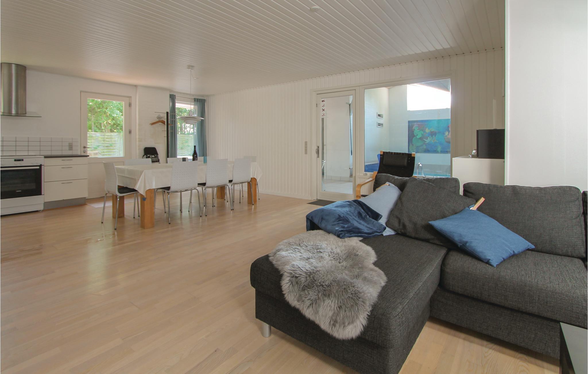 På en skøn naturgrund, i rolige omgivelser nær den dejlige sandstrand, ligger dette skønne feriehus. Huset er veludstyret og moderne indrettet med en hyggelig opholdsstue med komfortable møbler. Pæn spiseplads og mulighed for at holde øje med "køkkenpersonalet", der boltrer sig i husets åbne køkken. Den store afdeling med swimmingpool er husets hjerte og giver børn og barnlige sjæle mulighed for at lege og hygge sig, her kan I også slappe af i det store spabad eller den varme sauna. Dette kvalitetsferiehus har også en skøn terrasse med gode havemøbler og grill, hvor ferien virkelig kan nydes i komfortable og naturskønne omgivelser.