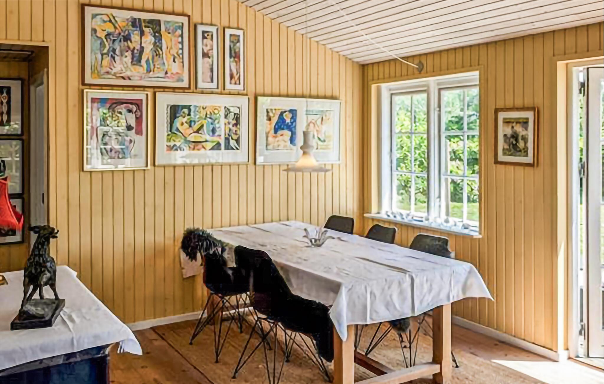 Dette velindrettede feriehus har en lys og venlig atmosfære, hvor I kan nyde en charmerende udsigt over haven takket være de mange vinduer. Glæd jer til hyggelige måltider i den indbydende spisestue og tænd op i brændeovnen inden en hyggelig spilleaftener i de komfortable sofaer.