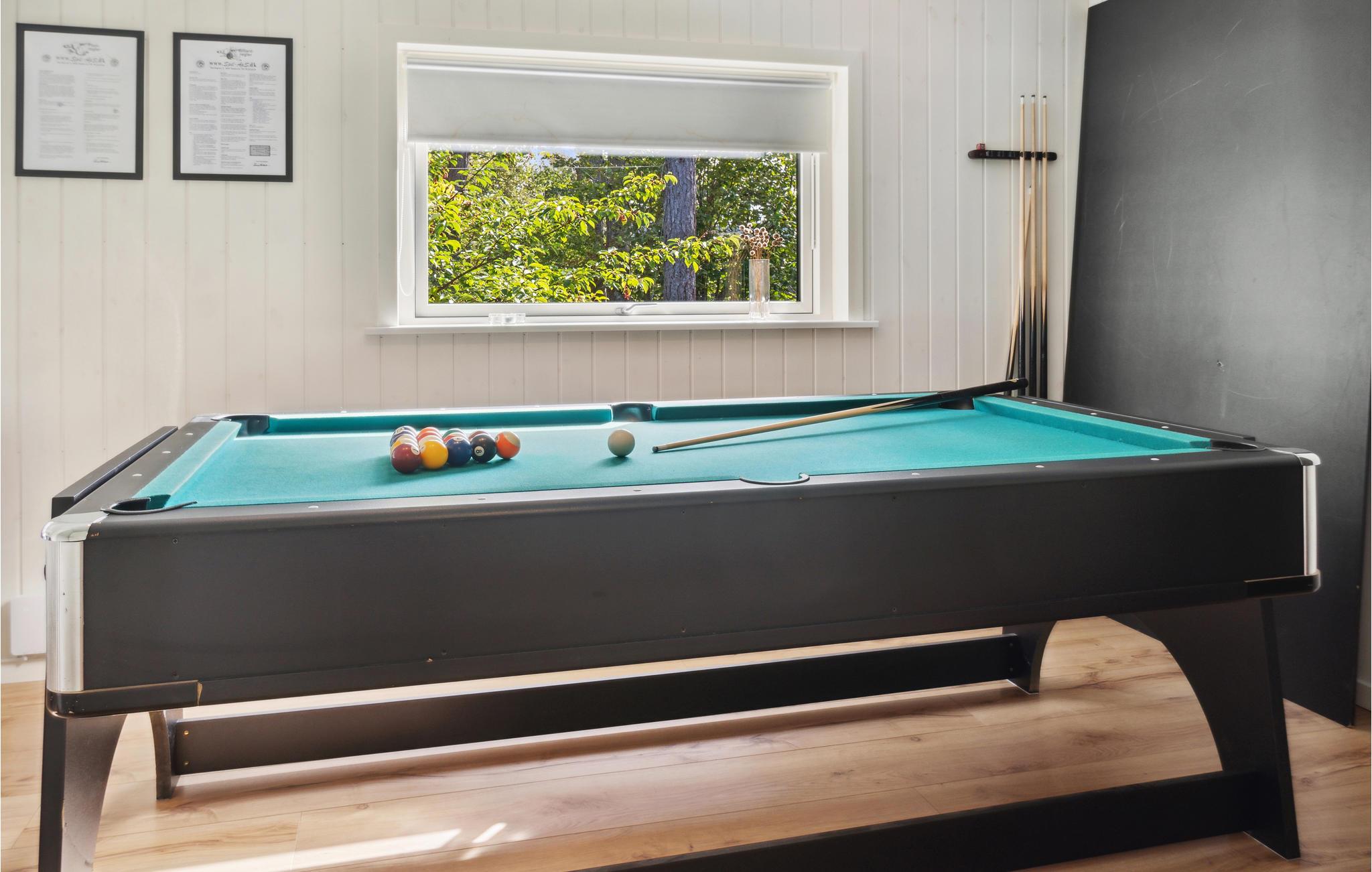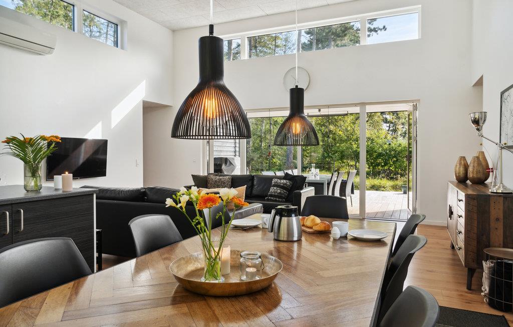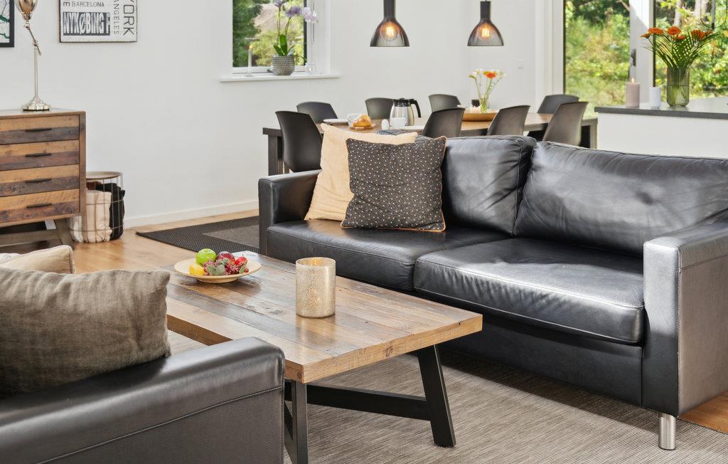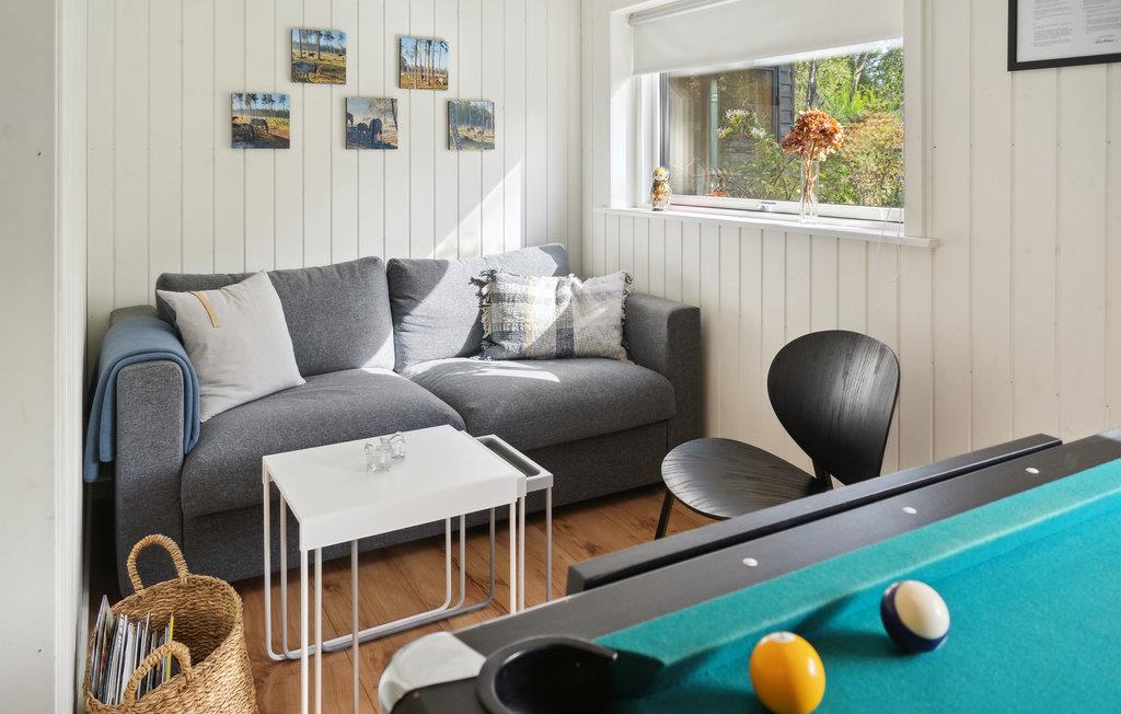 Dette moderne, interessante hus befinder sig meget tæt på stranden og er det rette sted til en ferie med masser af komfort. Allerede ved jeres ankomst udenfor vil det usædvanlige design pirre jeres nysgerrighed. Her kan I nyde den smukke udsigt over naturen, så snart I vågner. Udfordr jeres medrejsende til sjove dueller ved billardbordet eller slap af i saunaen, hvorfra I har en eminent udsigt over det grønne og drivende lammeskyer. Huset er omgivet af træer og tilbyder masser af plads til udendørs aktiviteter. Sæt jer på den behageligt møblerede terrasse, luk øjnene og nyd solen og feriestemningen. Den udendørs whirlpool byder på ren afslapning og lokker med velgørende massage. Gå en tur til stranden og nyd en svømmetur.