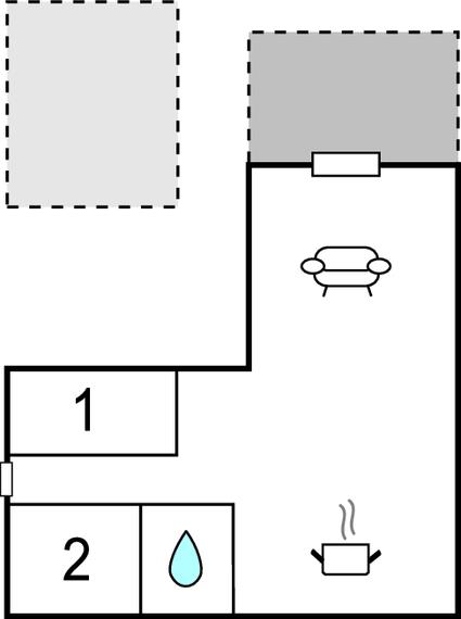Opholdsstue/køkken 35m2 - 2 Sovepladser. (Sofa, madras eller lignende).