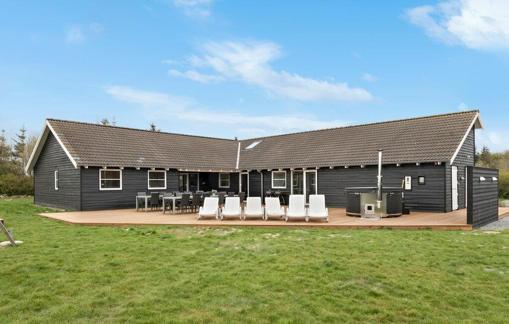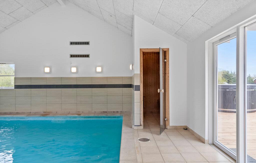 Tilbring fantastiske feriedage i dette dejlige feriehus, der er særligt velegnet til større familier eller vennegrupper. Glæd jer til en gennemtænkt planløsning, masser af plads og mange forskellige fritidstilbud hele året rundt. Træd ind i den åbne opholdsstue med højt til træloftet, brændeovn og flere hyggelige siddeområder. Spil en omgang bordfodbold, billard eller bordtennis sammen i aktivitetsrummet, eller nyd samværet ved det lange spisebord. Tilbered jeres livretter i det moderne køkken, eller slap af i spabadet efter en tur i poolen med rutsjebane. Der står også en sauna til rådighed.