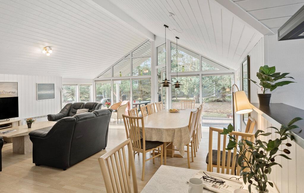 Huset er indrettet med et aktivitetsrum indeholdende bl.a. dart, poolbord og bordtennis. Det dejlige kombinerede køkken/alrum med opholdsstue er rummeligt, og på kølige aftener kan I tænde op i brændeovnen. I huset findes fire gode soveværelser samt en hems med gode sovepladser. Soveværelserne er placeret således, at huset er ideelt for flere familier. Desuden er der to badeværelser, det ene med et skønt spabad samt adgang til sauna.