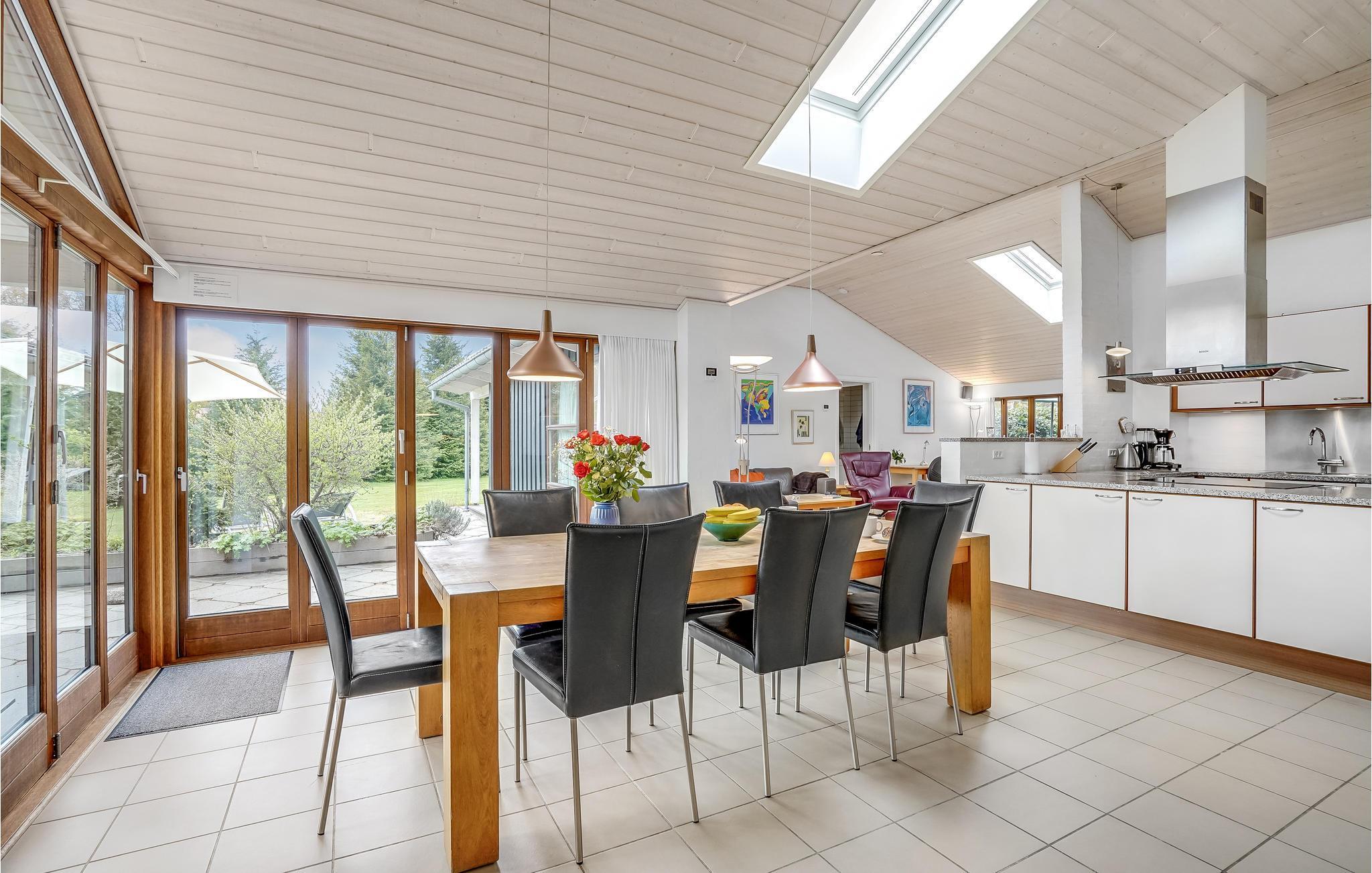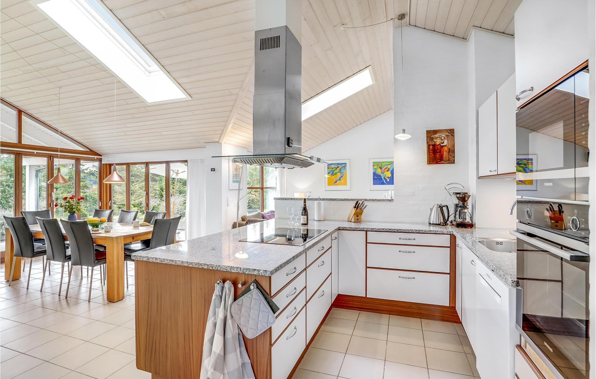 Dette lækre energi og allergivenlige luksusferiehus i træ og sten indeholder alt, hvad hjertet kan begære. Huset ligger på en stor, velanlagt grund tæt ved en af Danmarks bedste og børnevenlige sandbadestrande. Til huset hører 6 meget dejlige, såvel åbne som overdækkede terrasser med mulighed for solbadning og leg. Der forefindes ligeledes udendørs bruser. Fantastisk poolafdeling med swimmingpool, 4 personers spabad samt stor sauna. Flot møbleret og indbydende stue med brændeovn. Huset er udstyret med solceller og blødtvands anlæg. I soverum 3 findes et TV med Playstation3. Huset er velisoleret, godt lydisoleret og velegnet til 2 familier. Der er monteret solafskærmning/mørklægningsgardiner i alle soveværelser. Det er skønt beliggende tæt ved grønne områder, fuglereservat, golf, bowling samt fiskesø.