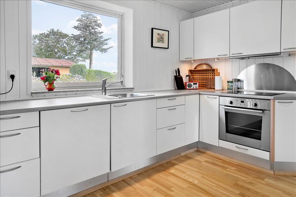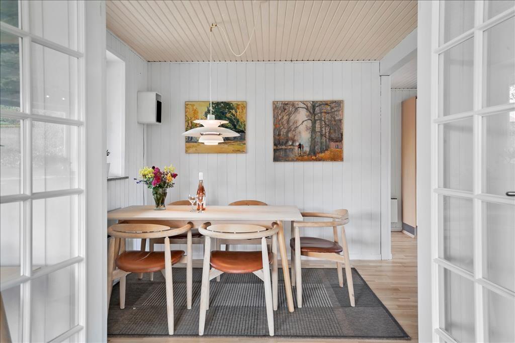 Sommerhuset er indrettet med en skøn blanding af lys, varme og klassisk sommerhusstemning, der straks får dig til at slappe af. Det åbne opholdsrum forener køkken, spiseplads og stue, så du altid er tæt på dine nærmeste – hvad enten I laver mad sammen, spiller brætspil eller nyder en god film i sofaen. De store vinduespartier trækker lyset ind og skaber en dejlig forbindelse til naturen udenfor, hvor årstiderne maler deres skiftende farver i horisonten.