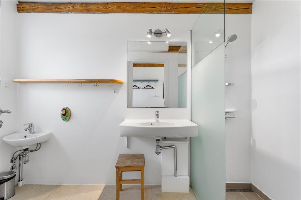 Det store fælles bryggers, som deles med lejlighed på 1. sal, har rigelig garderobeplads, vaskemaskine og tørretumbler.