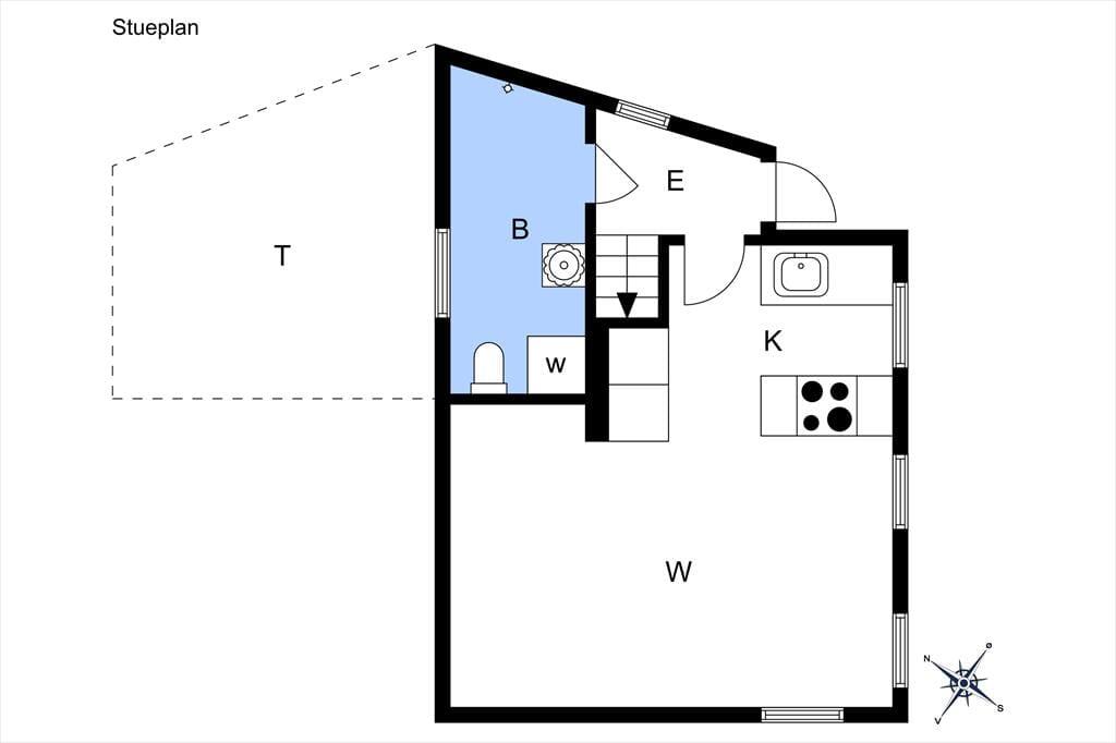 Boligen indeholder: Åbent køkken til stue og spiseplads. I stuen er der fjernsyn og internetadgang og en sovesofa med plads til to personer. Badeværelse med brusekabine og vaskemaskine.