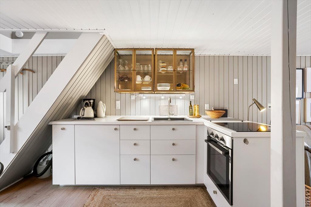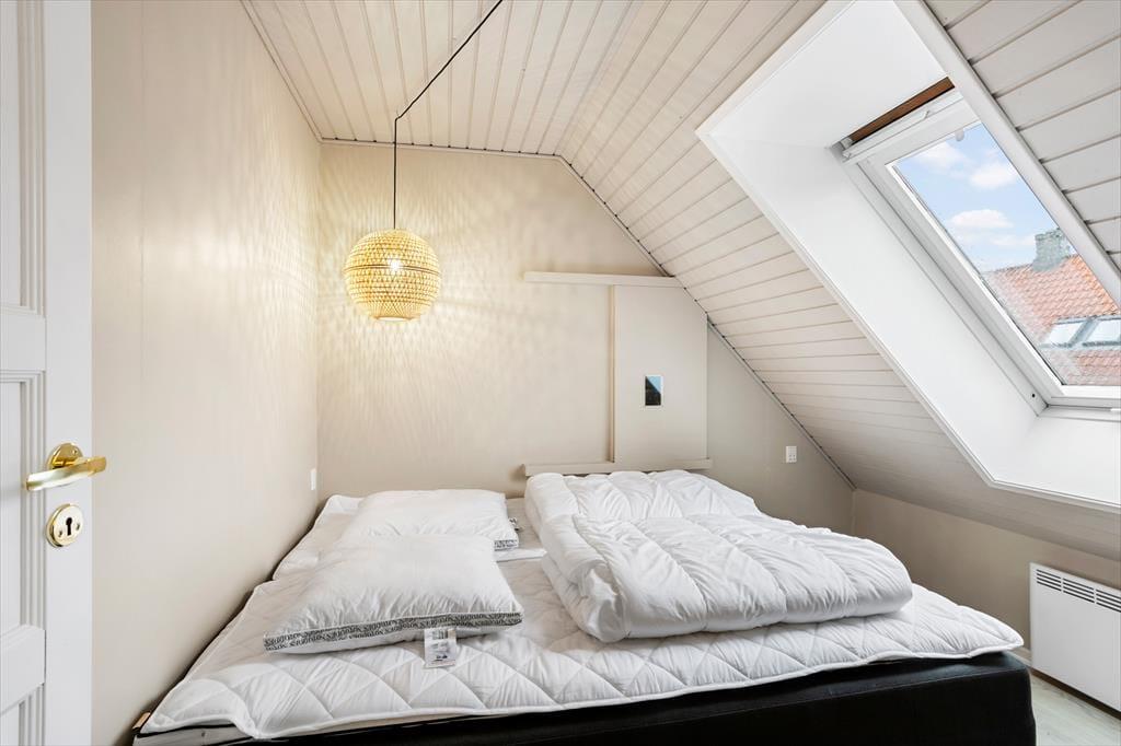 Størrelsen på husets rum gør sammen med skråvæggene noget ved stemningen. Der er en skøn opholdsstue, 2 gode soveværelser med dobbeltseng, et dejligt badeværelse – og køkkenet gør det nemt at lave et måltid. Det her er jeres dejlige feriehule, og hver dag kan nydes til ud på de små timer i den lukkede gårdhave med behagelige havemøbler og grill.