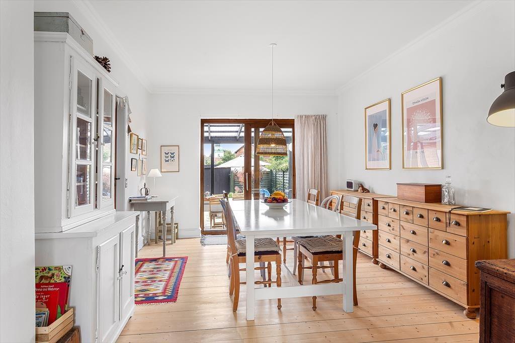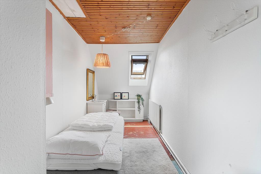 Huset emmer af autentisk stemning med sit klassiske ydre og charmerende detaljer, mens det indre er opdateret med moderne bekvemmeligheder. Et retro badeværelse sætter prikken over i’et og giver dig følelsen af at træde ind i en anden tid – på den helt rigtige måde.