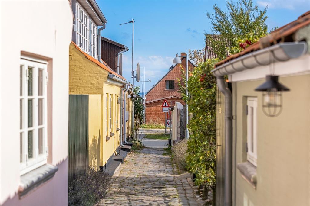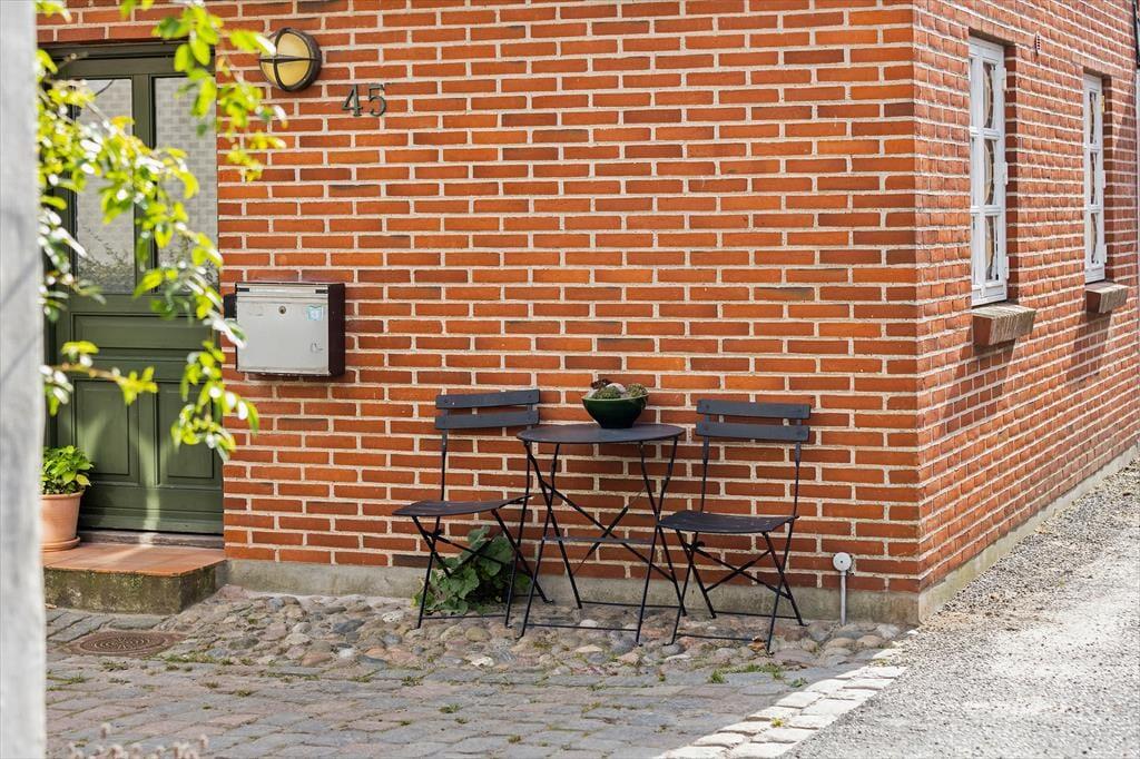 Når du åbner døren, står du midt i hjertet af gamle Marstal. Små brostensbelagte gader, stokroser foran de gamle huse og duften af hav, der kun ligger 50 meter væk. Her er det let at finde sin egen rytme – tage en stille morgentur langs havnen, lade blikket glide over de gamle træskibe eller bare sidde i solen og mærke, at ø-livet bevæger sig i sit eget rolige tempo.