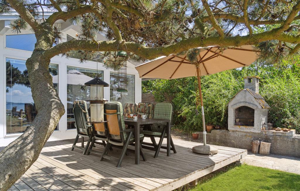 Terrassen indbyder til hygge og festmiddage, - lavet på den store gasgrill. Ydermere er der en terrasse i vandkanten, hvorfra man kan nyde den flotte solnedgang. Indvendig er der en stor køkken/opholdsstue. Køkkenet er bestykket med alt relevant køkkenudstyr.