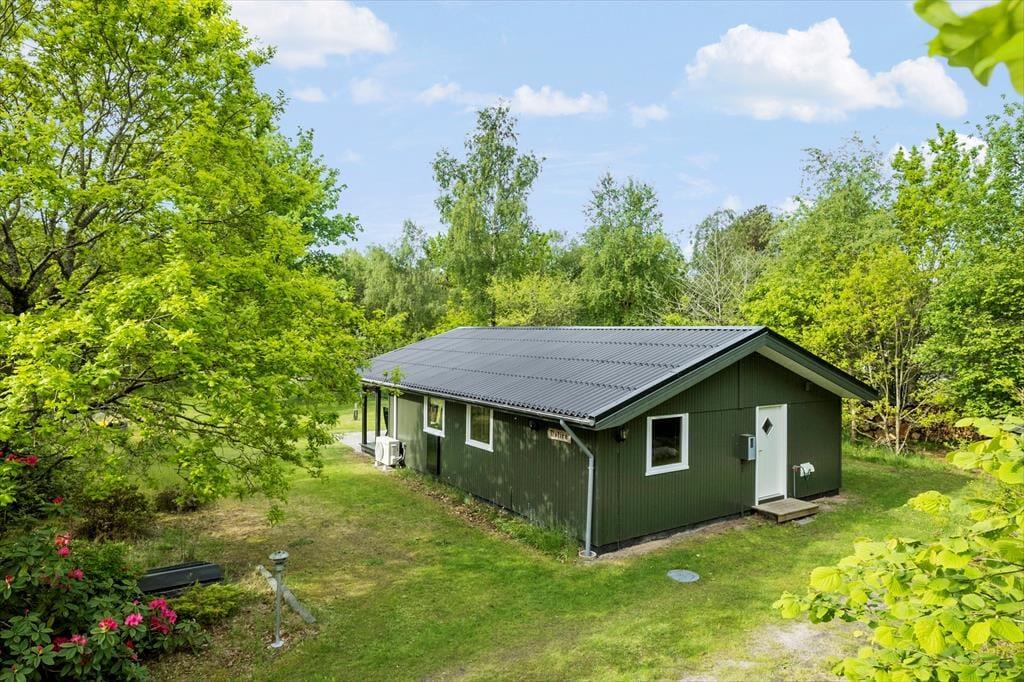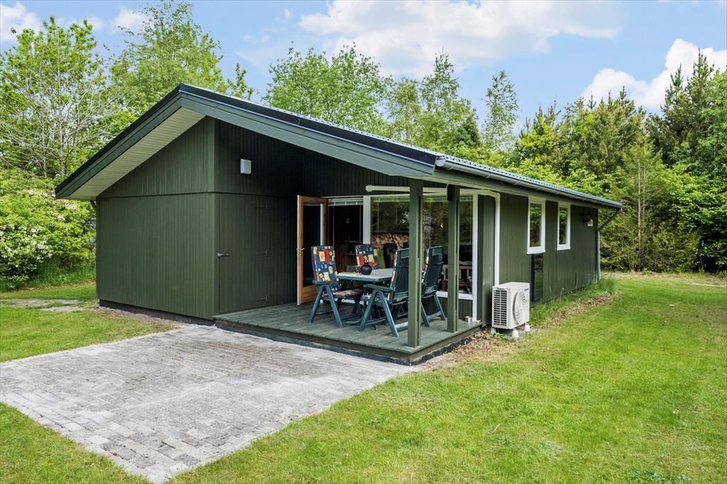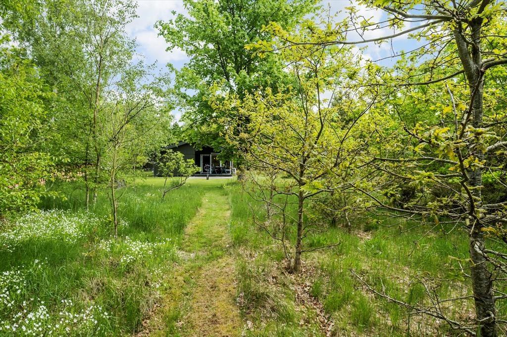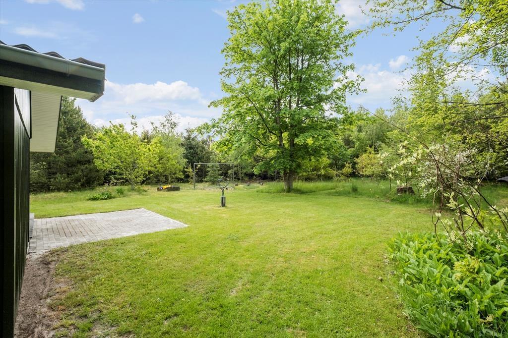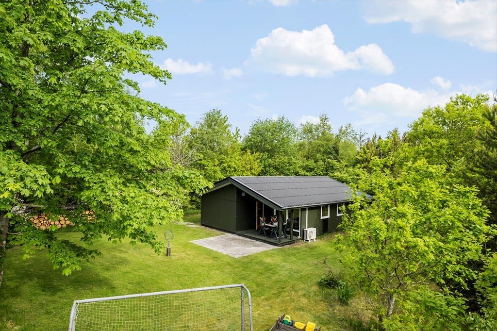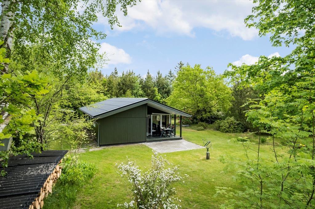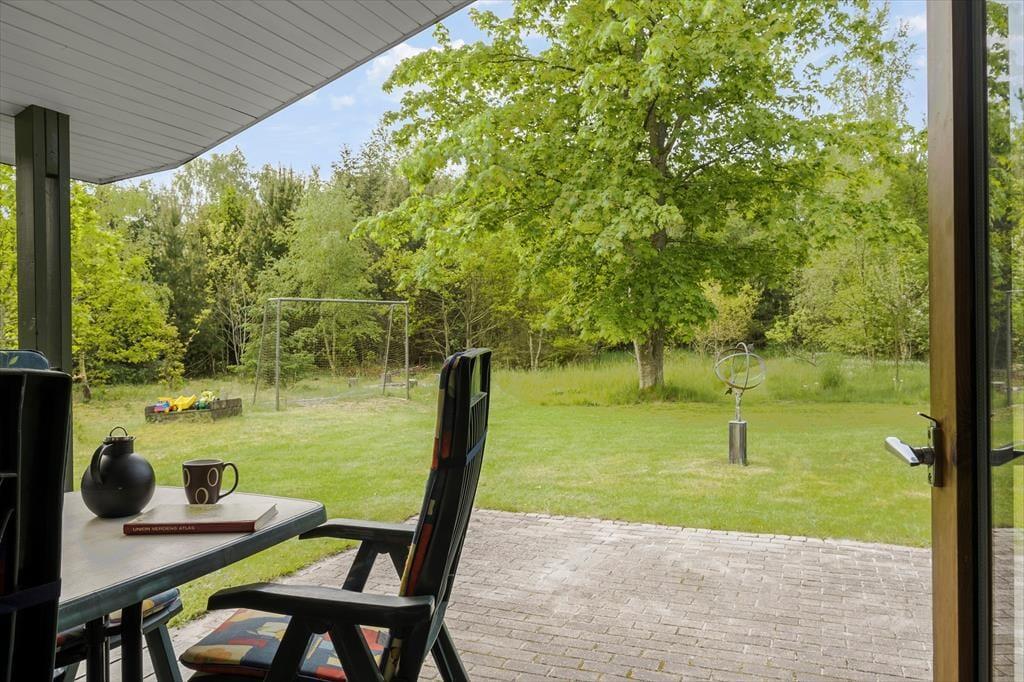 Både børn og voksne kan se frem til at opholde sig på den 2600 m2 store naturgrund. De yngste kan lege i sandkassen og skyde til måls, inden hele familien samles til frokost på terrassen eller en hyggestund ved bålstedet. I kan også tage en siesta i solen – eller på den overdækkede del af terrassen, hvis I trænger til skygge.