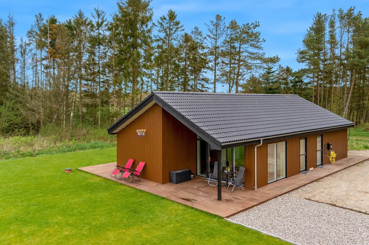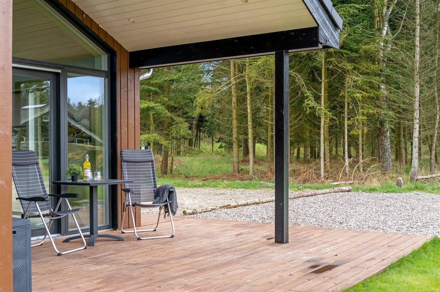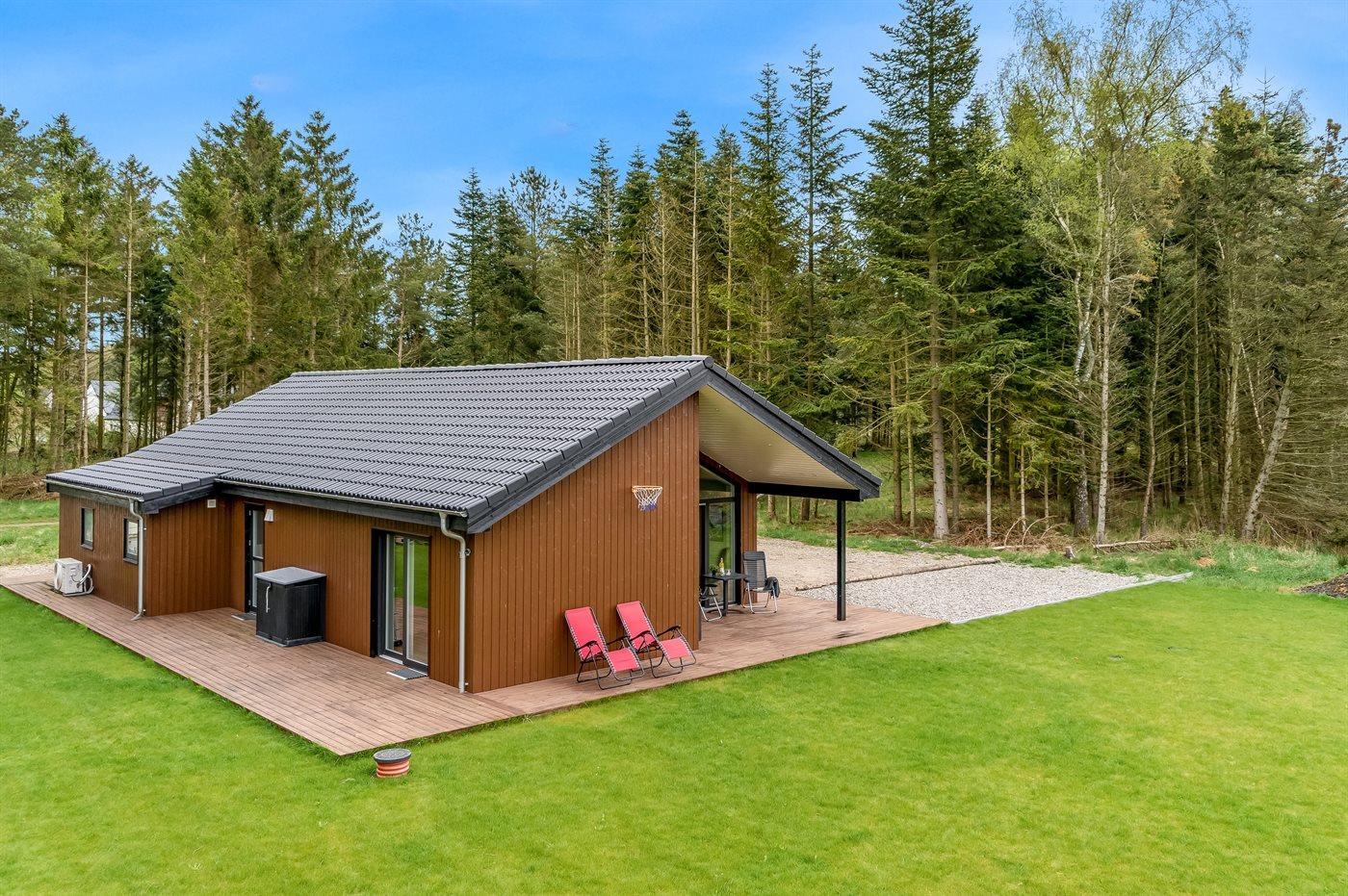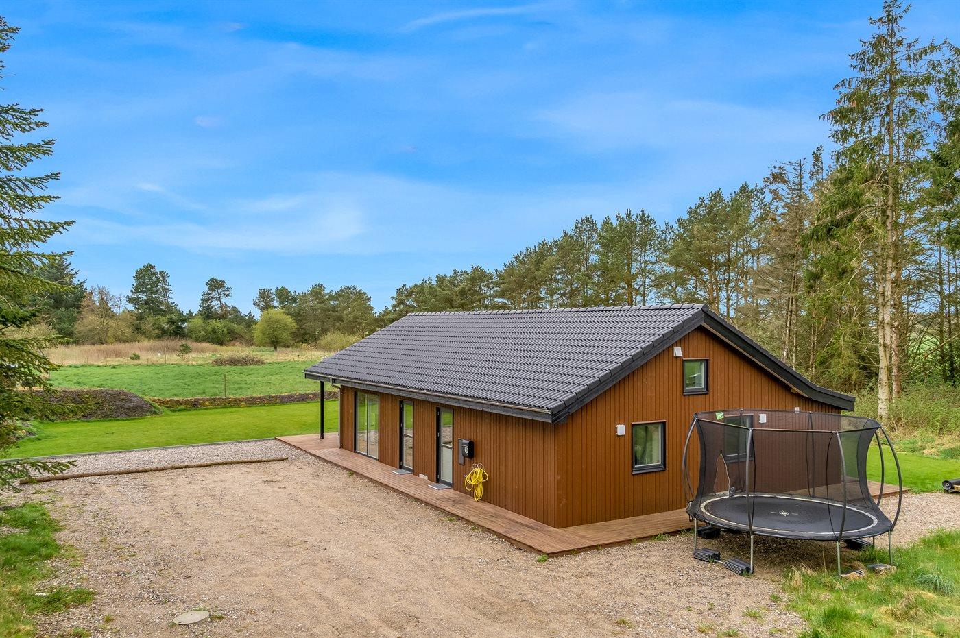Nybygget sommerhus fra 2024 med moderne faciliteter og idyllisk beliggenhed i skov nær Hals.
