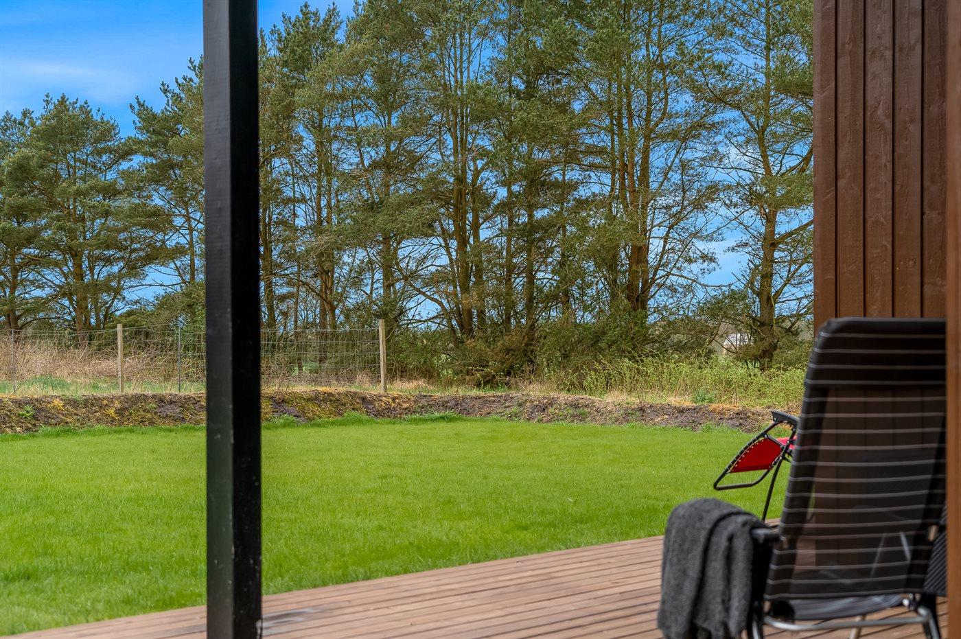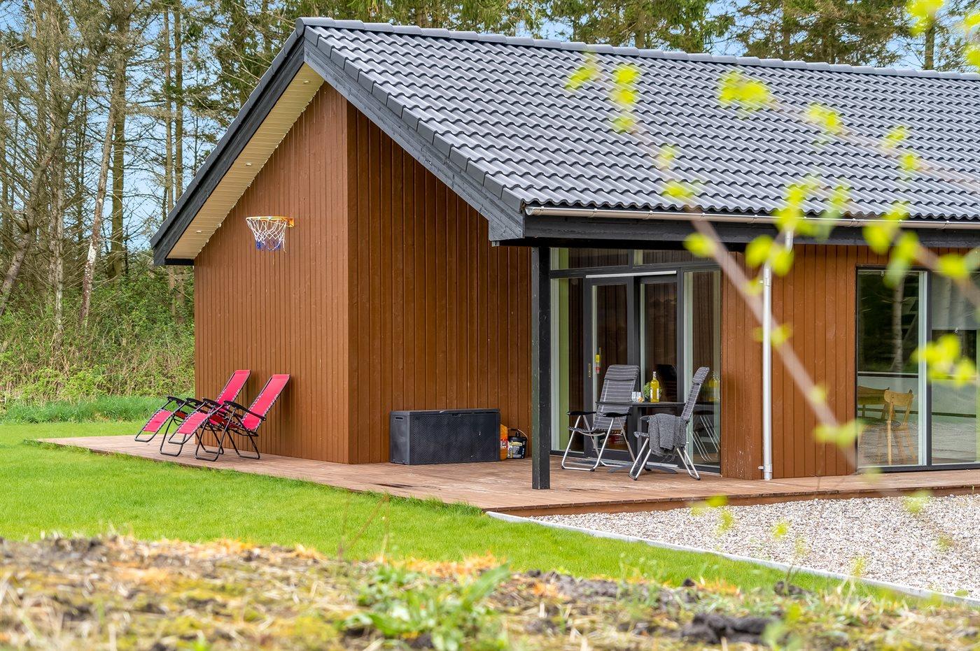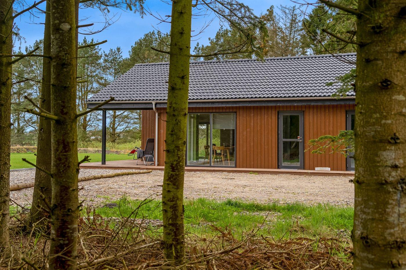 Nybygget sommerhus fra 2024 med moderne faciliteter og idyllisk beliggenhed i skov nær Hals.