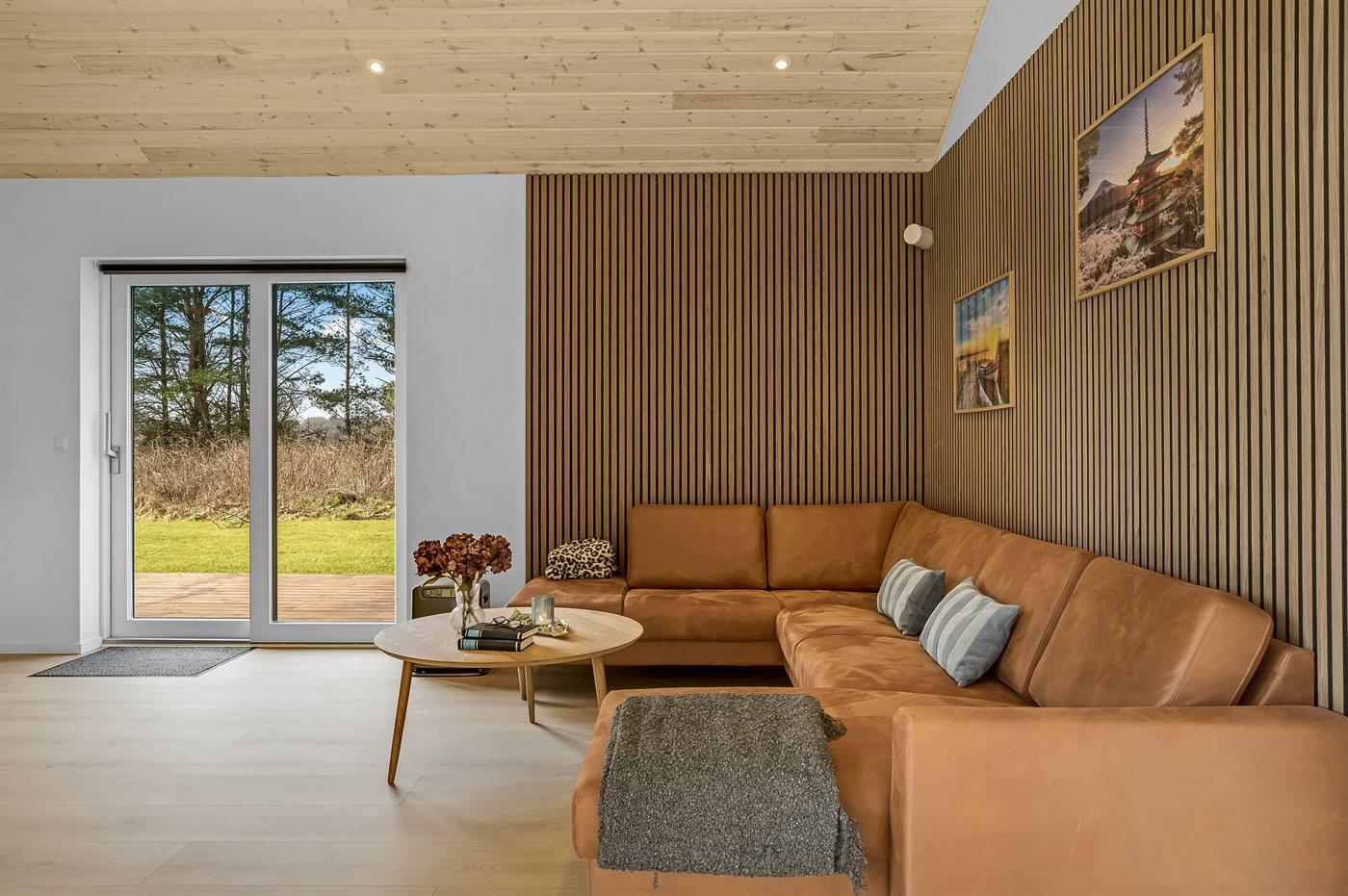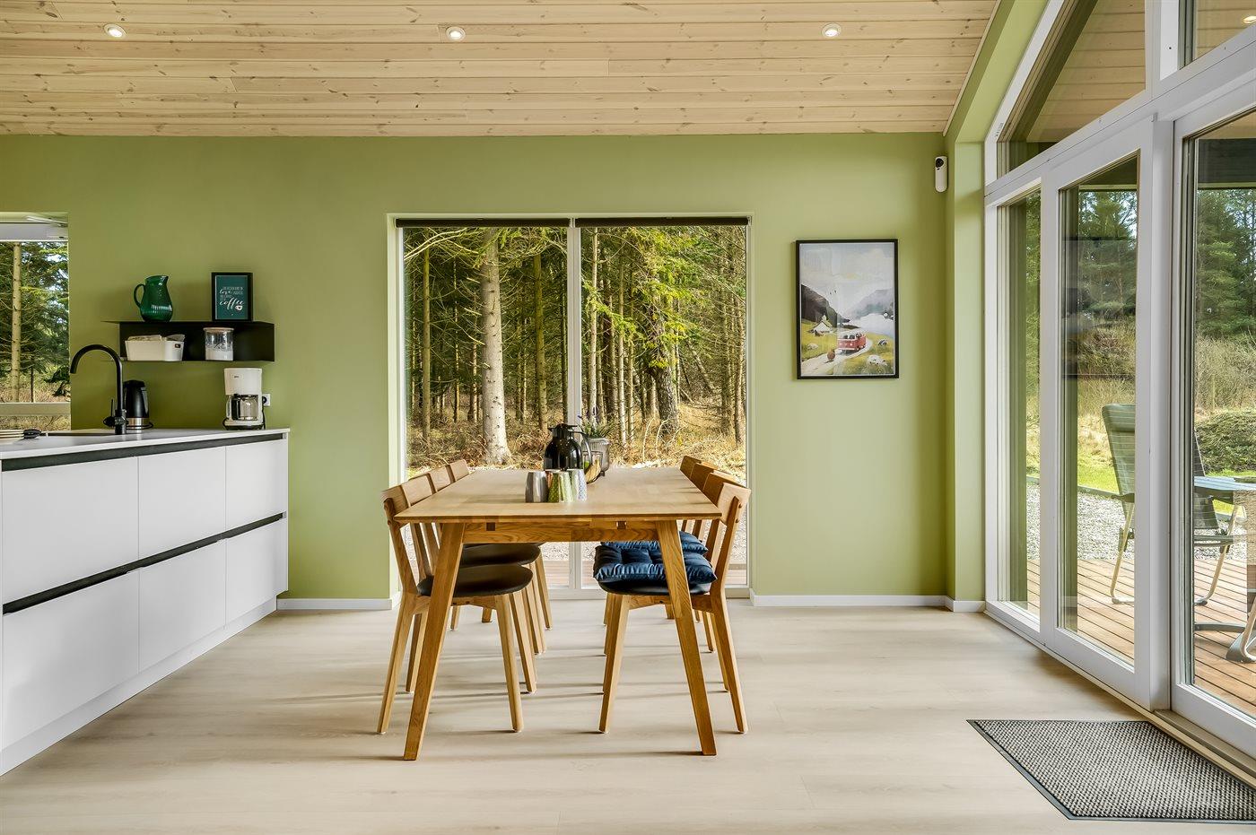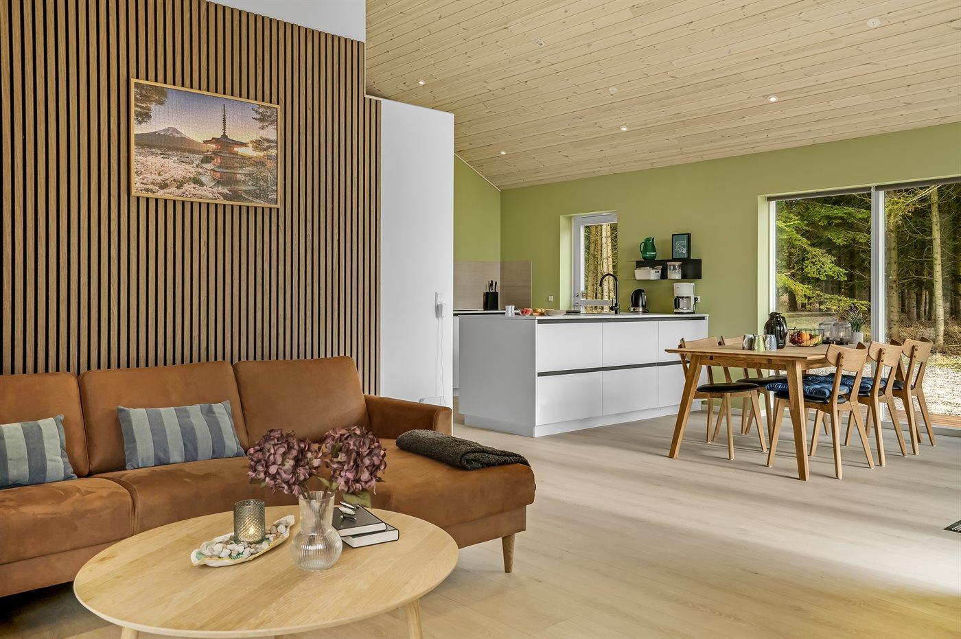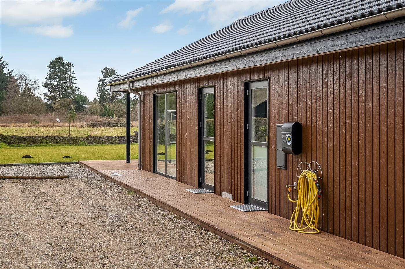 Nybygget sommerhus fra 2024 med moderne faciliteter og idyllisk beliggenhed i skov nær Hals.